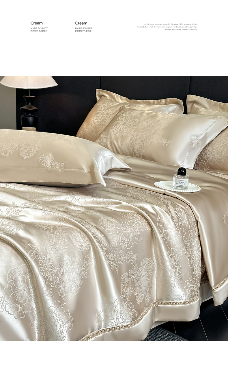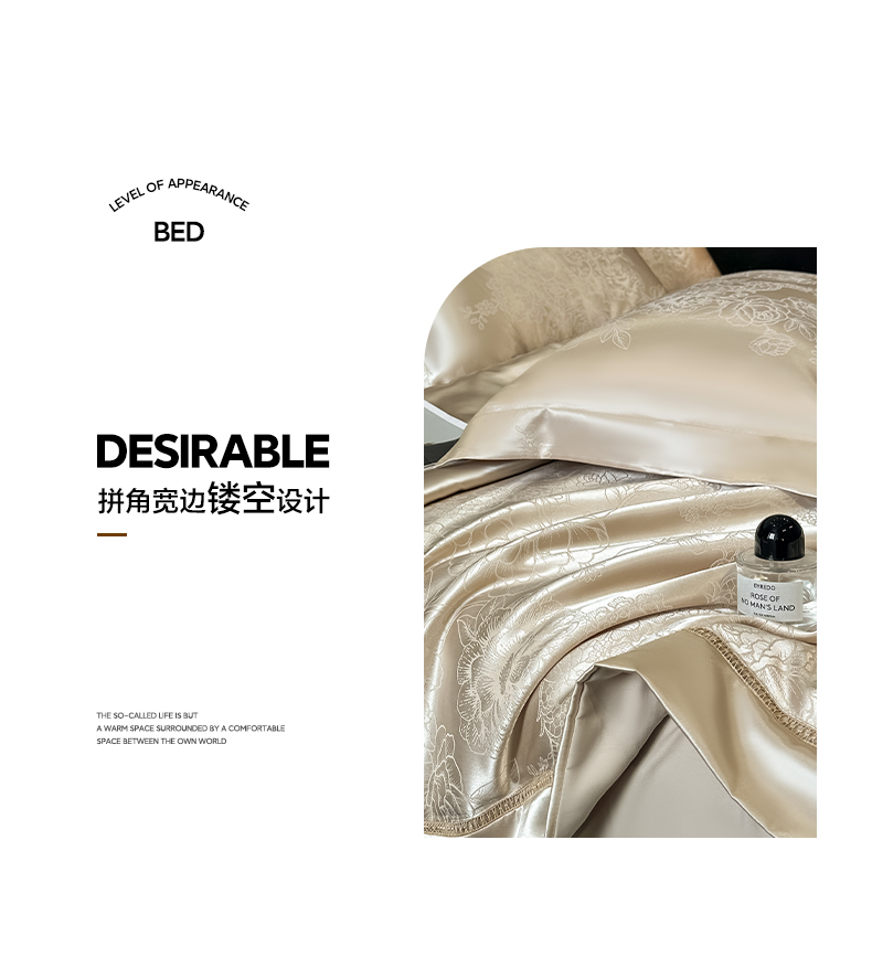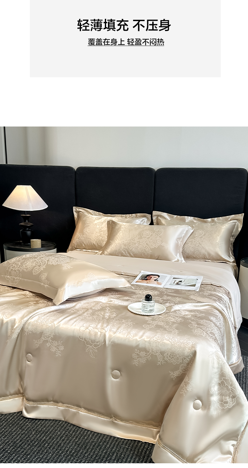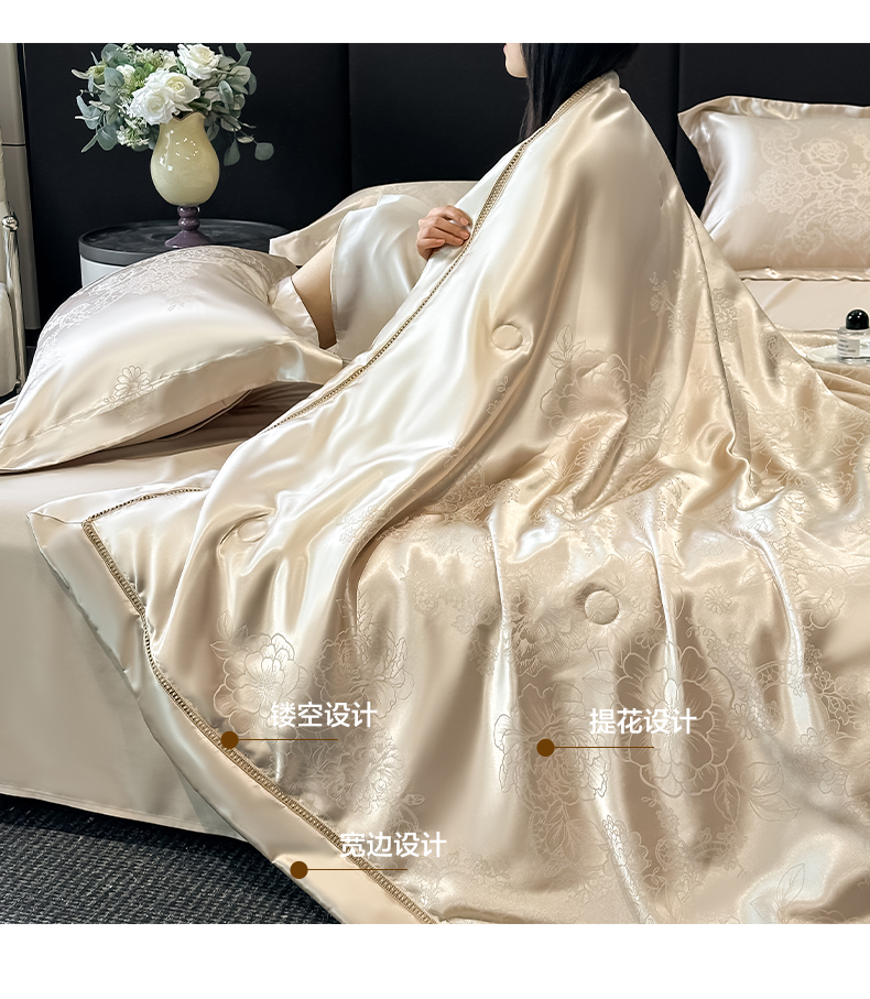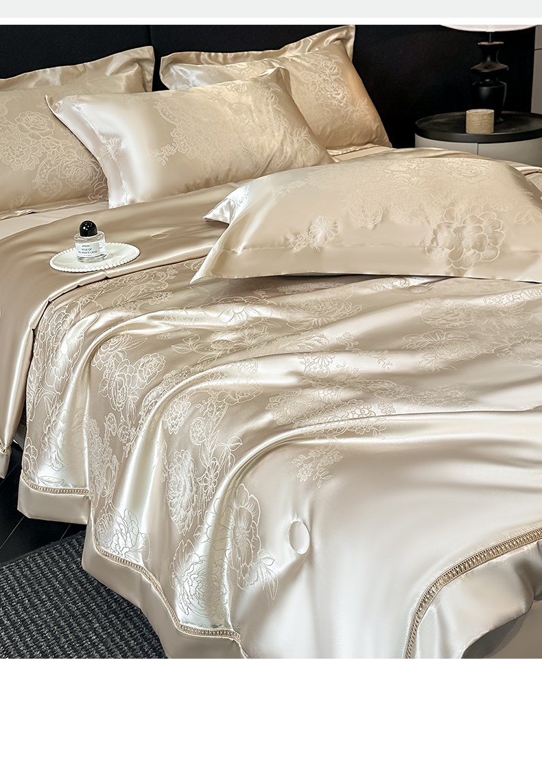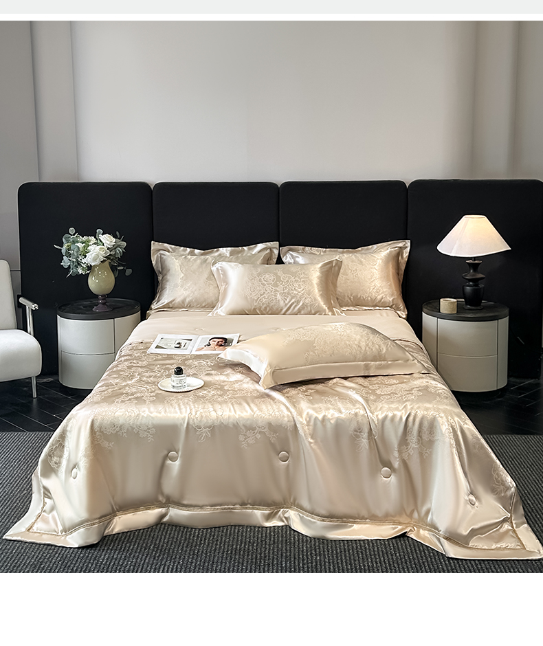 当前位置: 91家纺网 > 商品网购 > 床品套件 > 四件套 > 夏被四件套 > 博纳家纺 2026新款轻奢高端色织定位提花拼角镂空款夏被四件套冰丝凉感夏被四件套繁花魅影 香槟