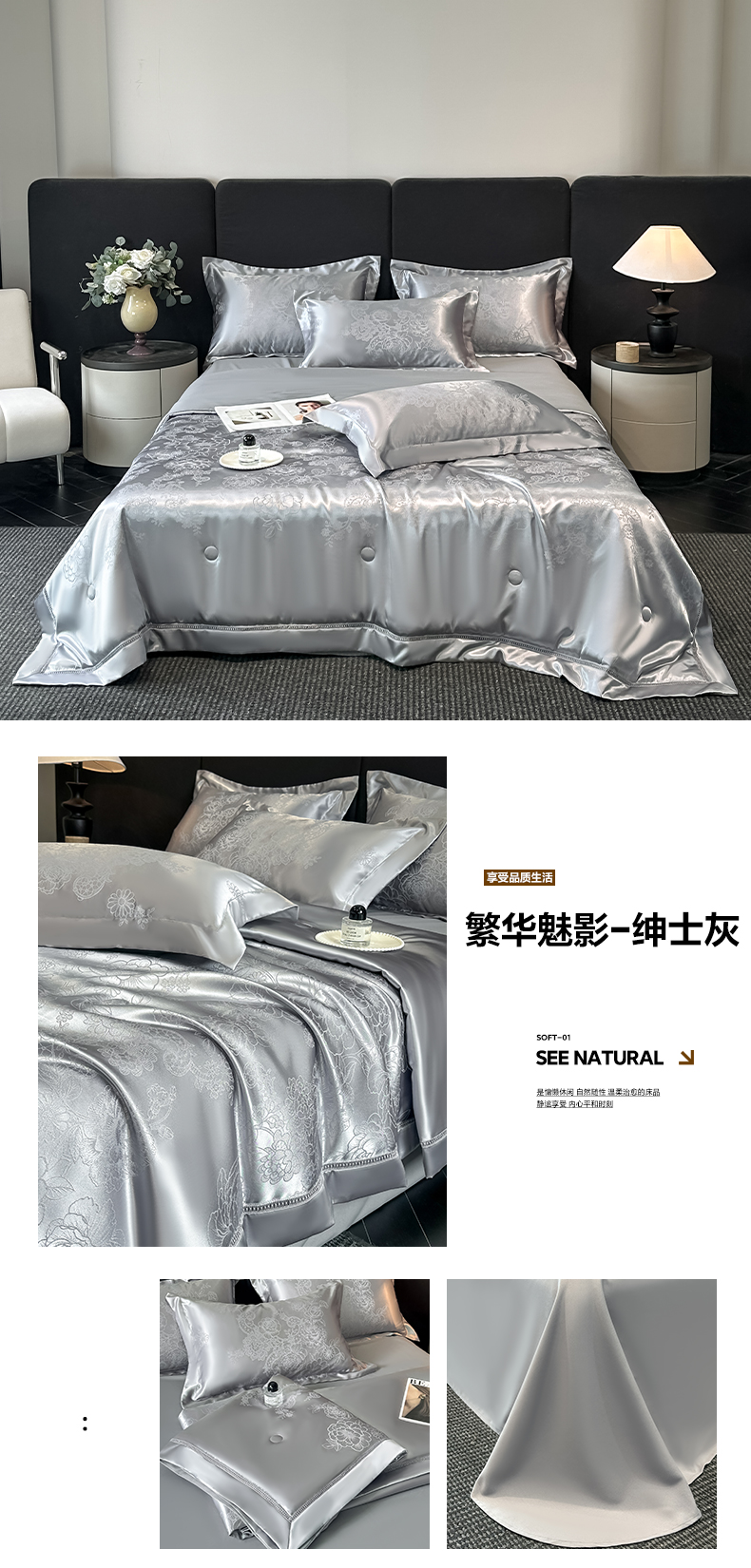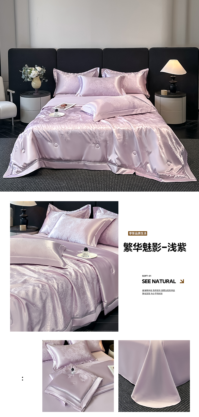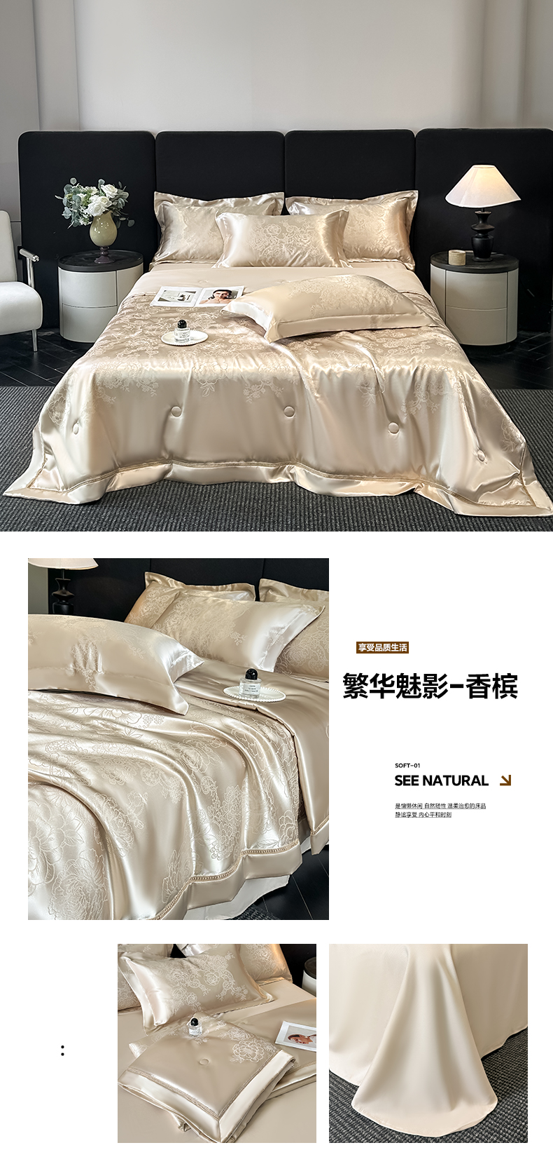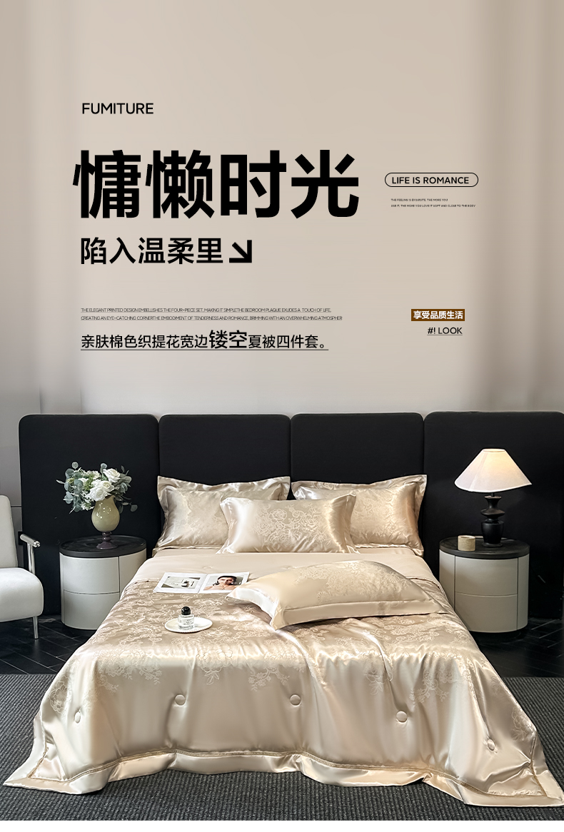 当前位置: 91家纺网 > 商品网购 > 床品套件 > 四件套 > 夏被四件套 > 博纳家纺 2026新款轻奢高端色织定位提花拼角镂空款夏被四件套冰丝凉感夏被四件套繁花魅影 香槟