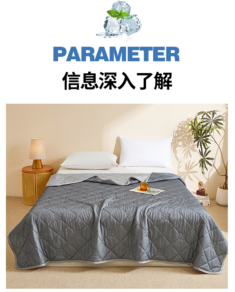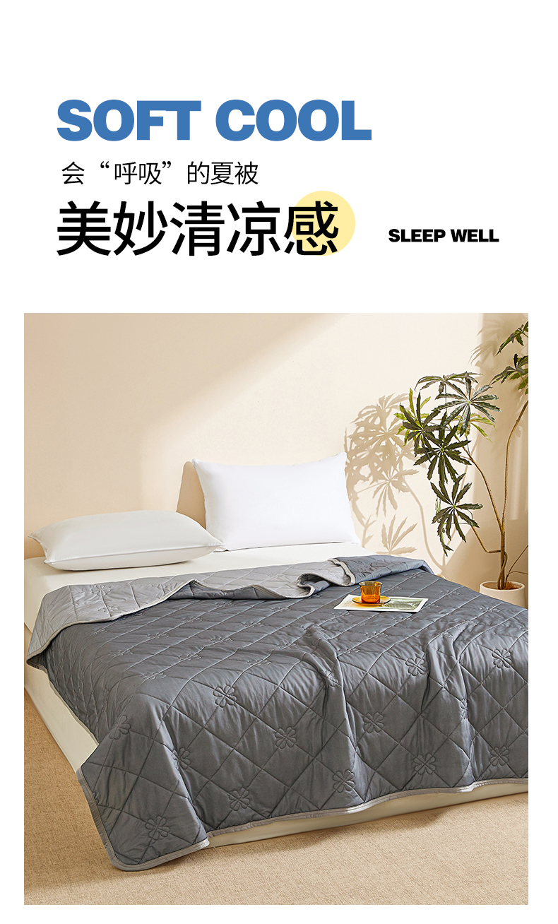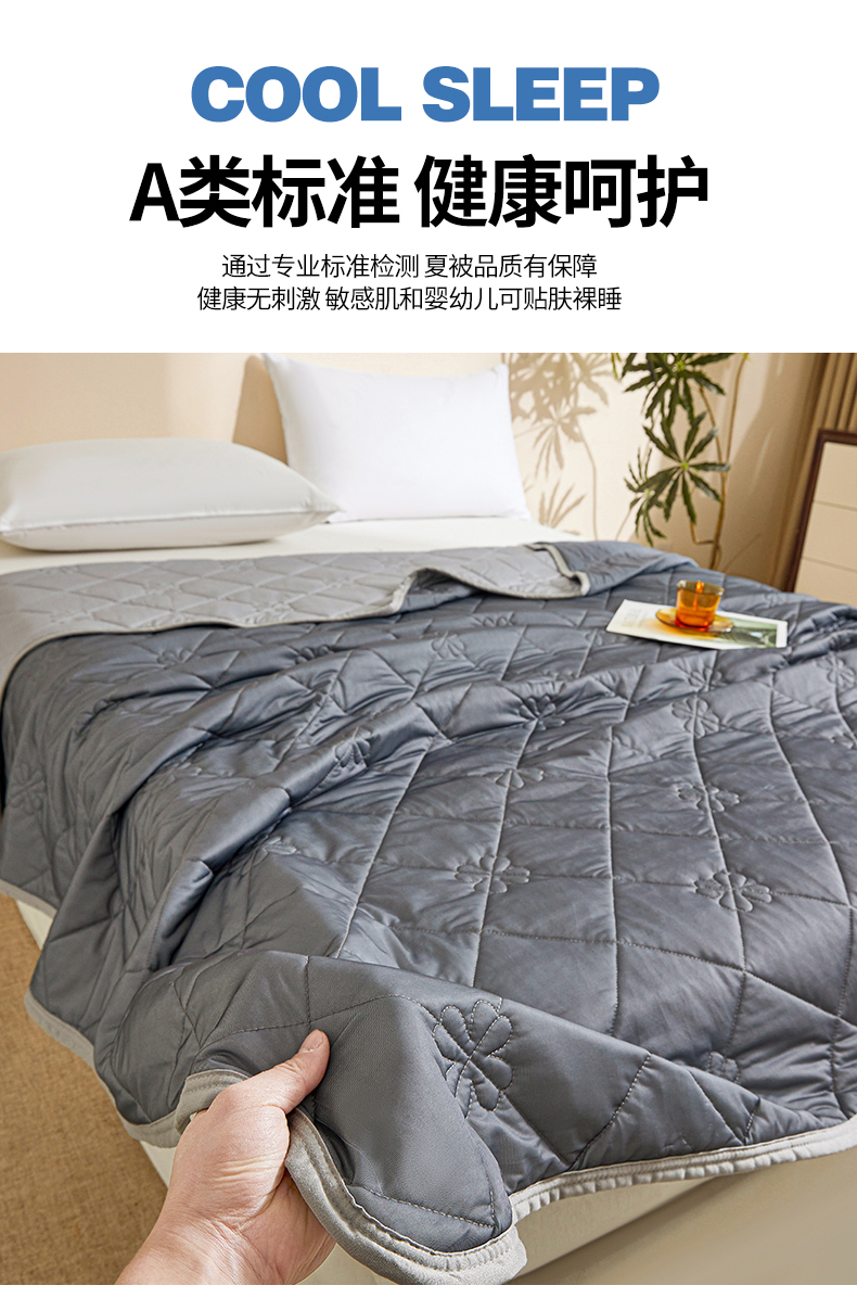 商品名称:魅图家纺 2026新款跨境A类凉感丝夏被-中文版 双拼-远黛灰