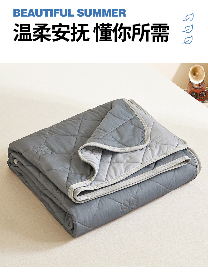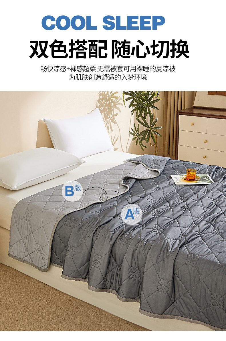 魅图家纺 2026新款跨境A类凉感丝夏被-中文版 双拼-远黛灰