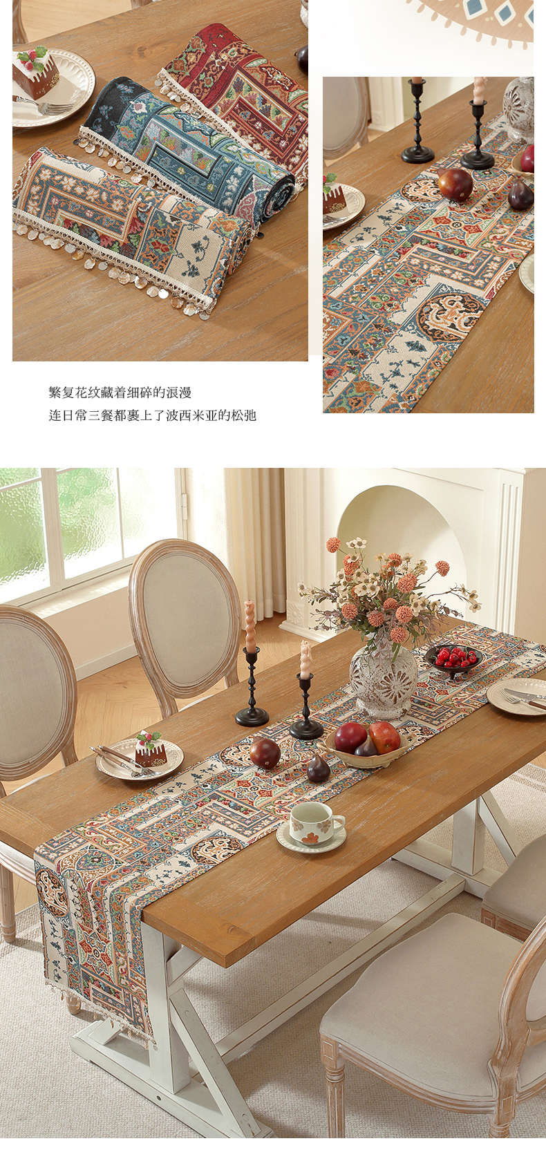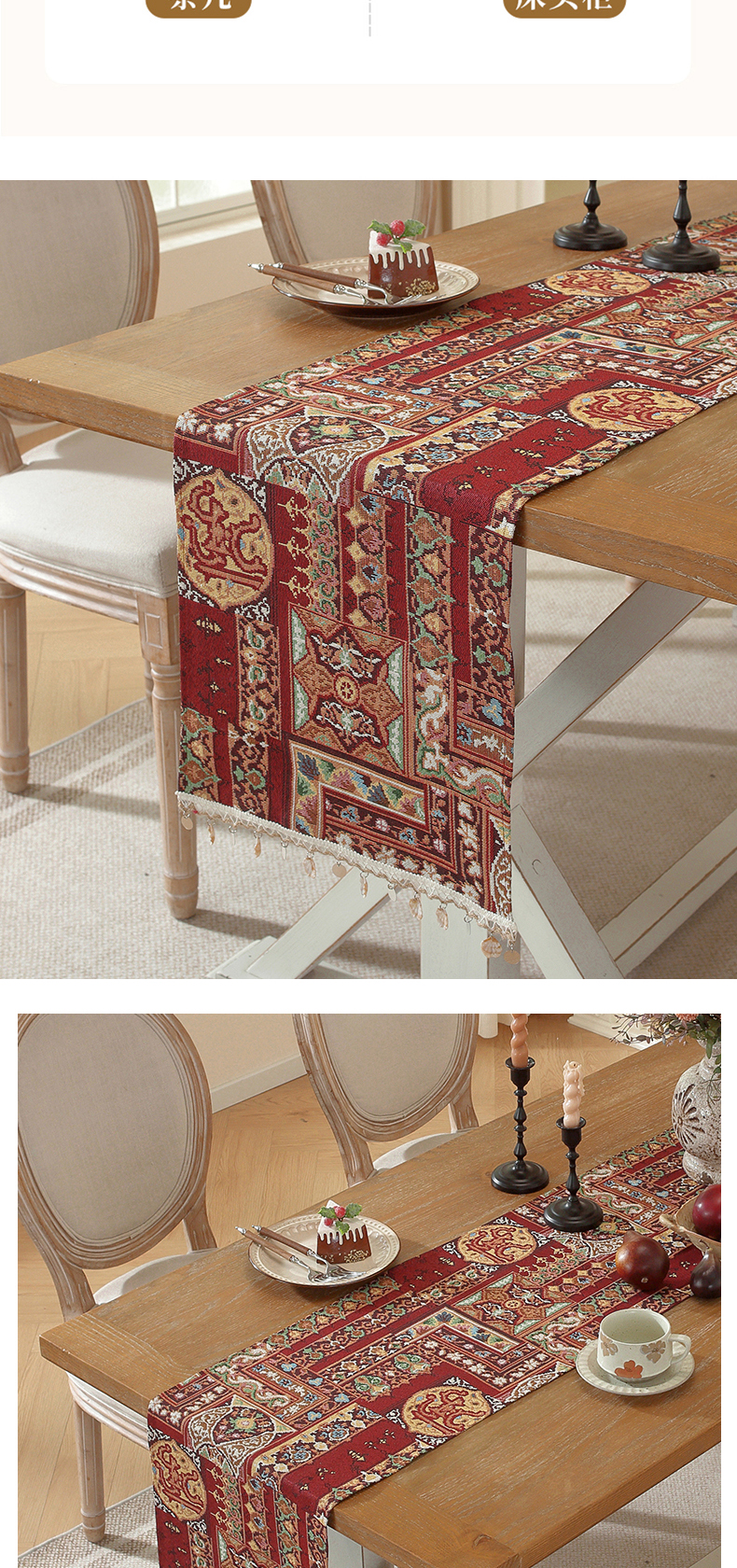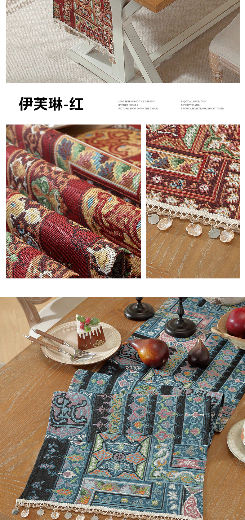 当前位置: 91家纺网 > 商品网购 > 居家布艺 > 餐桌布 > 南通大梧纺织 2026新款波西米亚复古伊芙琳桌旗 伊芙琳-红