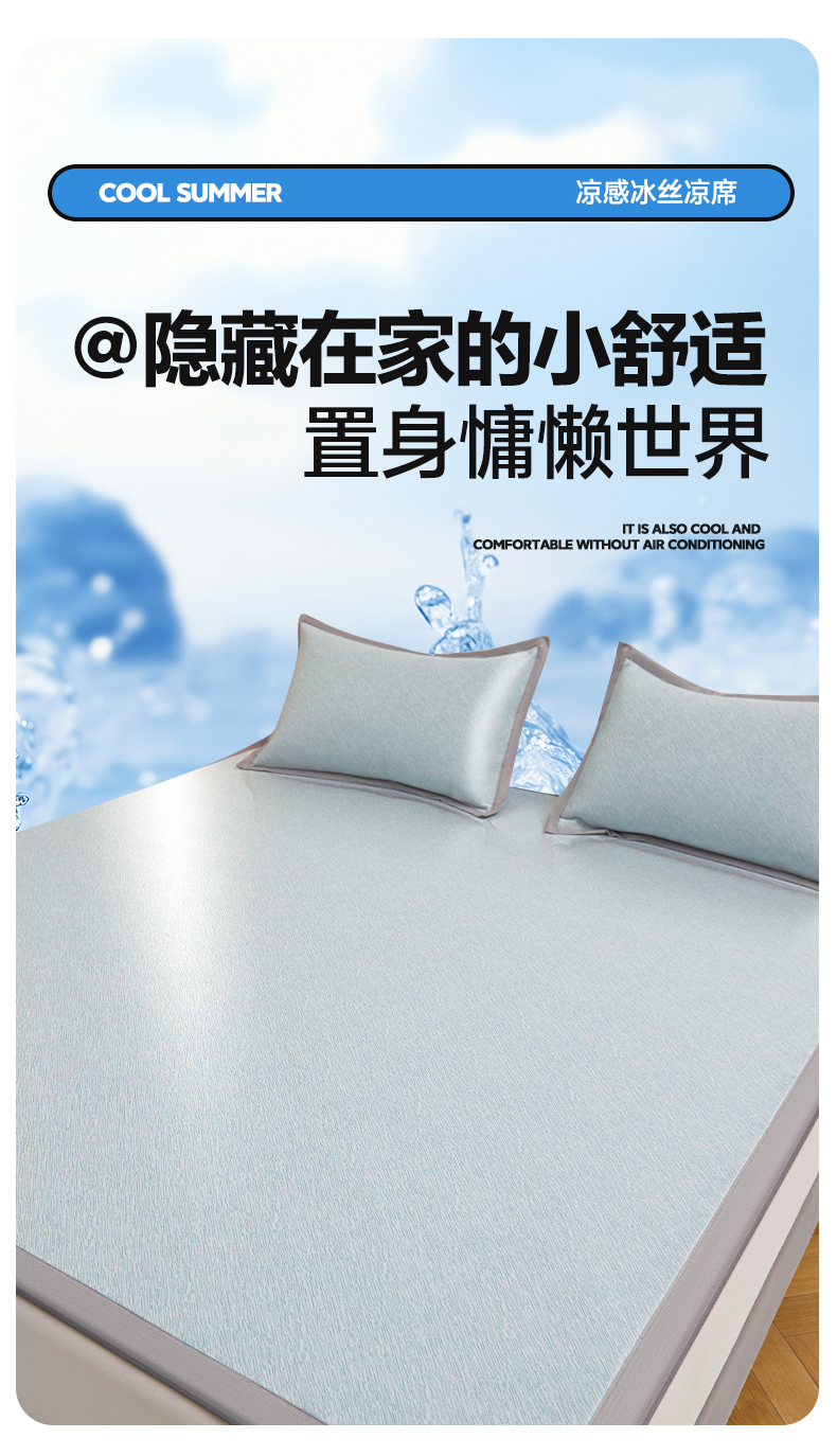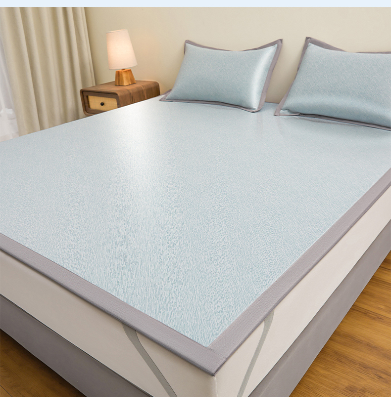 (总)航途席业 2026新款清澜肌理粗冰丝凉席席子-可机洗,粉,灰,蓝紫,绿