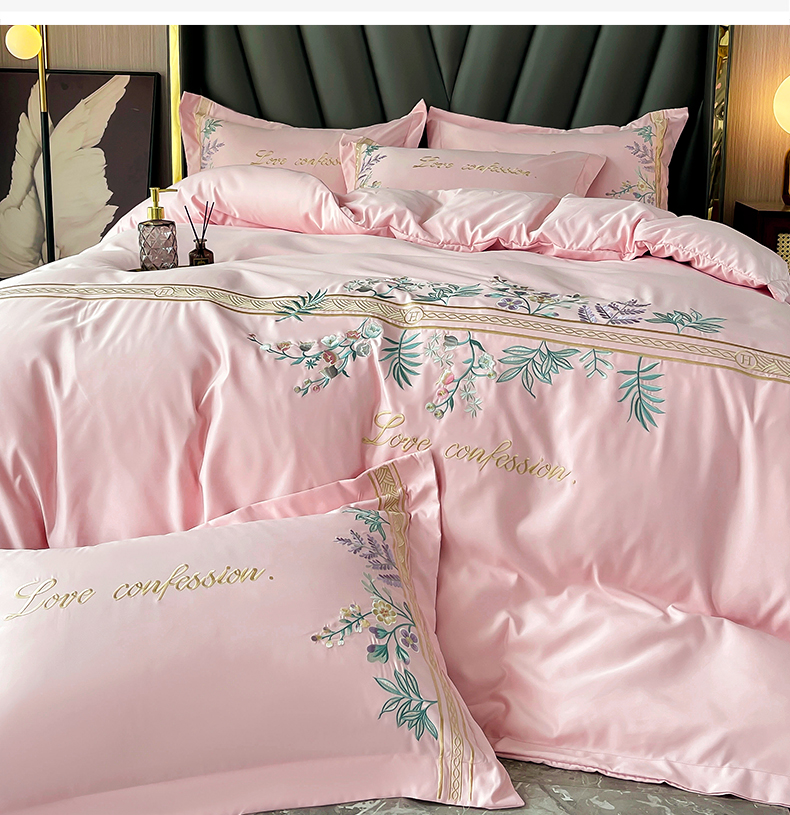 (总)玉相逢 2026新品天丝双拼刺绣四件套-卡骆驰系列,樱花粉,梦幻紫,天空蓝