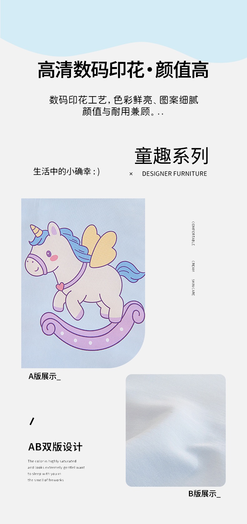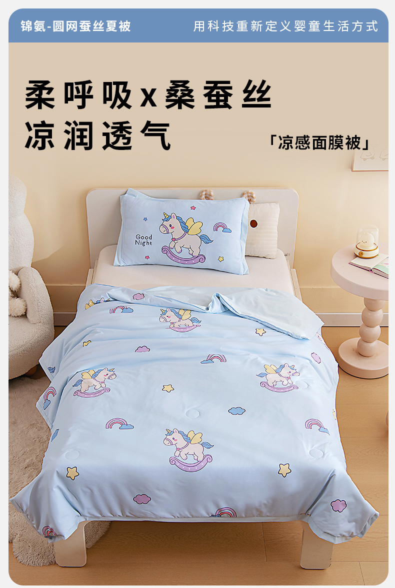 商品名称:御棉坊2026新款A类锦氨数码印花圆网蚕丝儿童夏凉被幼儿园午睡被宝宝夏季空调被薄被子 锦氨-彩虹小马