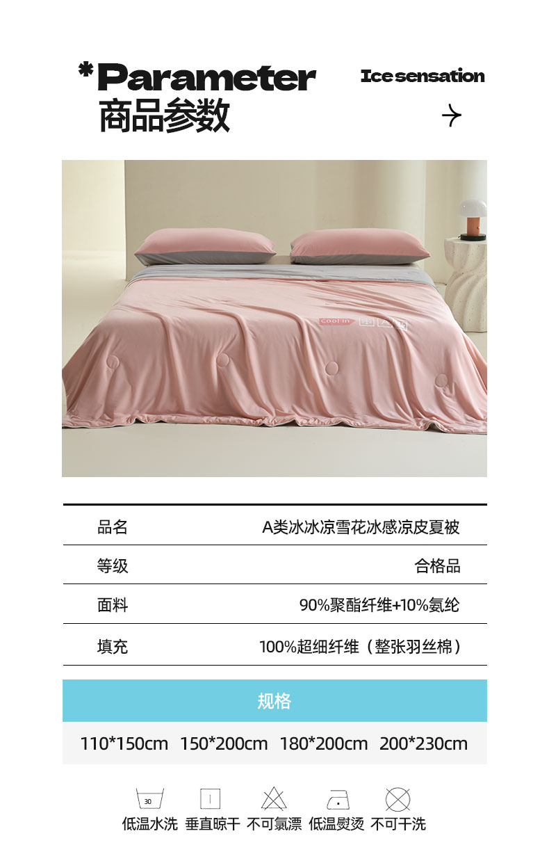 商品名称:(总)桃子家居 2026新款A类高品质冰冰凉雪花冰感凉皮双面加倍透气孔氨纶凉感夏被