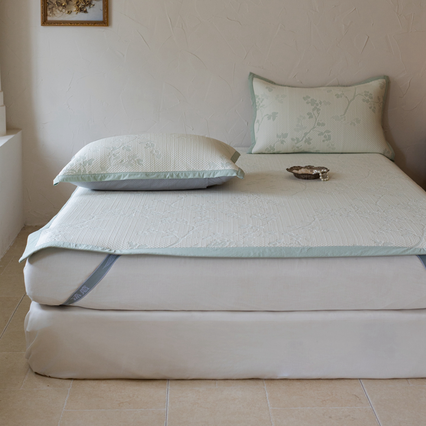 商品名称:云上 2026新款冷萃丝三明治凉感席凉席席子-花漾系列 花漾床席款-绿