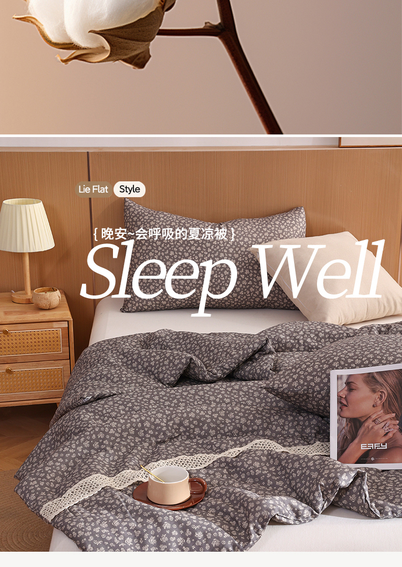 (总)尊妙被业 2026春夏新款莱赛尔天丝夏被蚕蛹蛋白夏被夏凉被空调被四件套-印花款,暗香绘-棕,花颜外-蓝,林屿间-粉,林语花夏-米,柳语素枝-绿,蔓行-绿,沐初-兰,叶间绒雪-兰,自然低语-绿