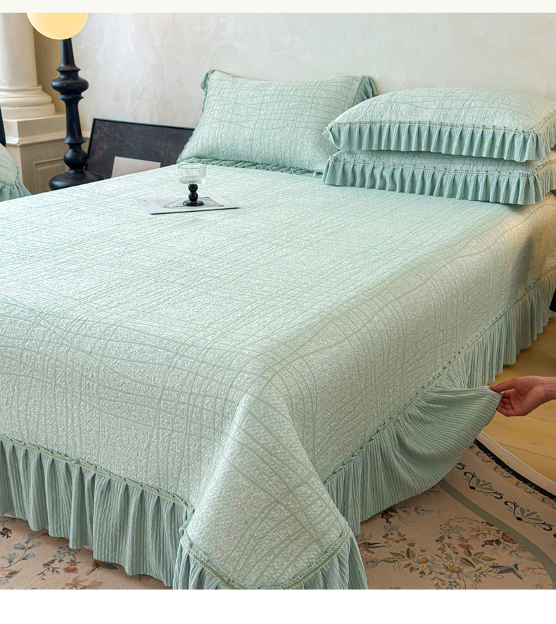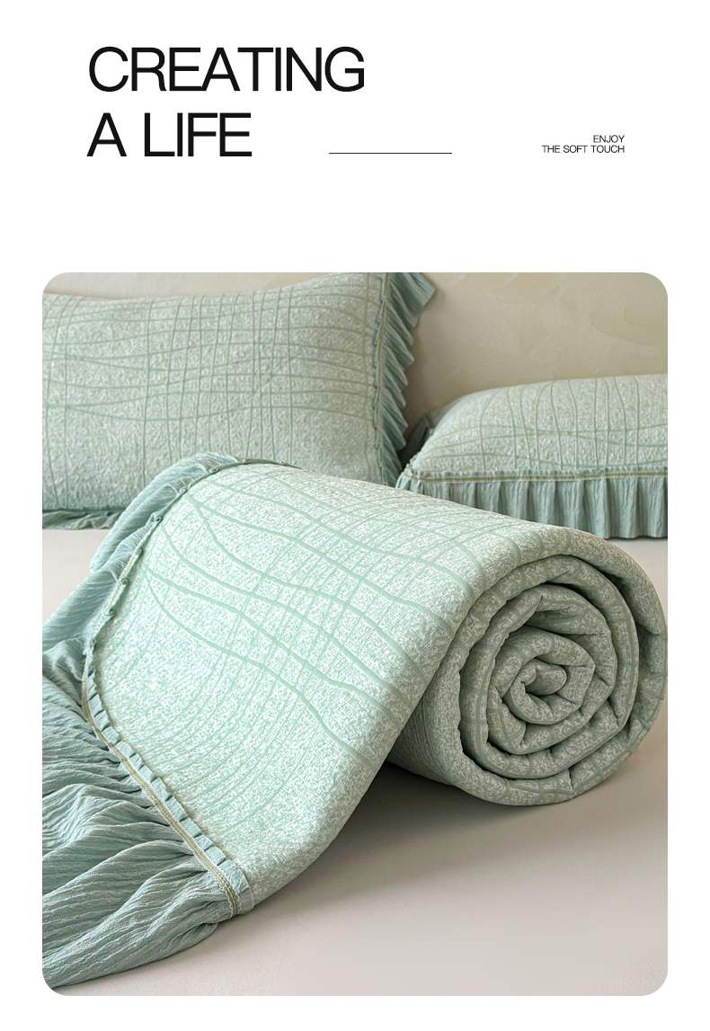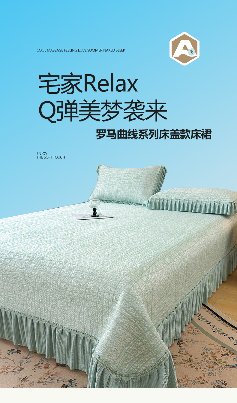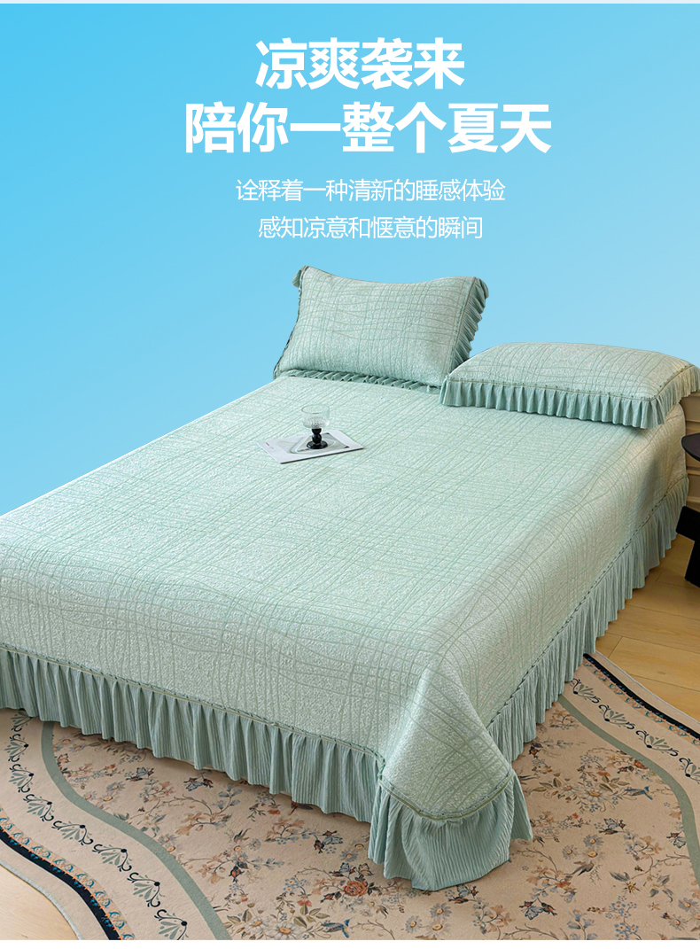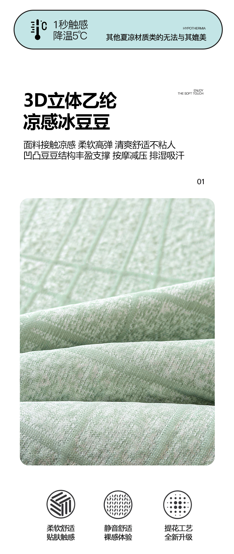 商品名称:慕木家纺 2026新款满天星系列冰豆豆凉席(三明治复合)乙纶面料 罗马曲线-绿