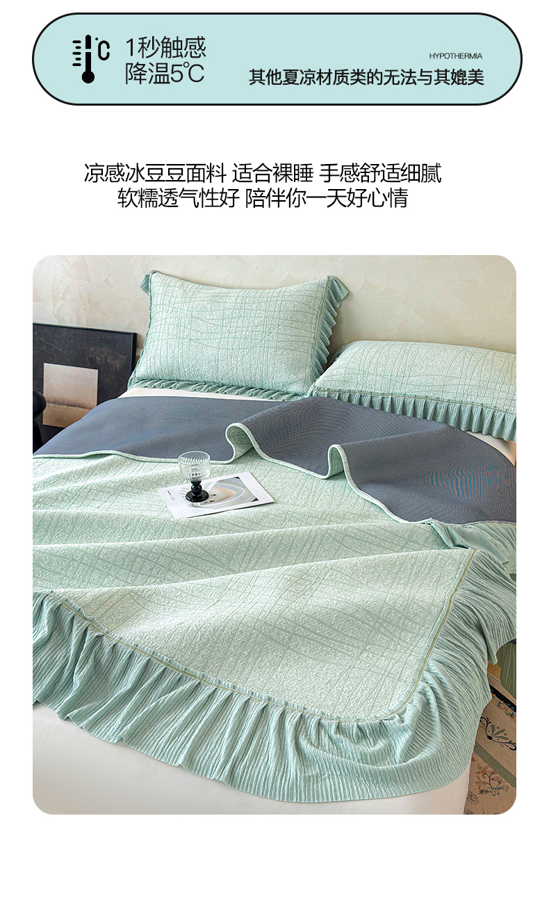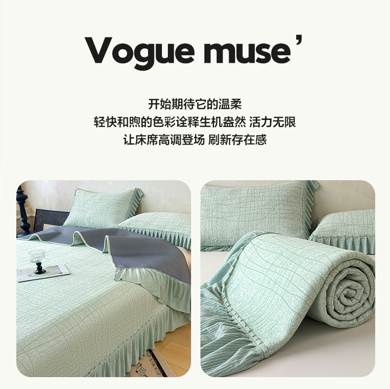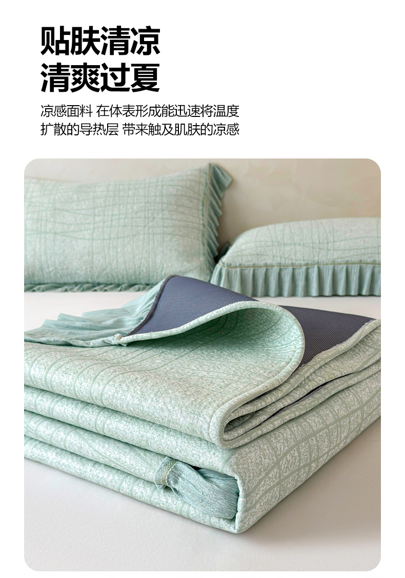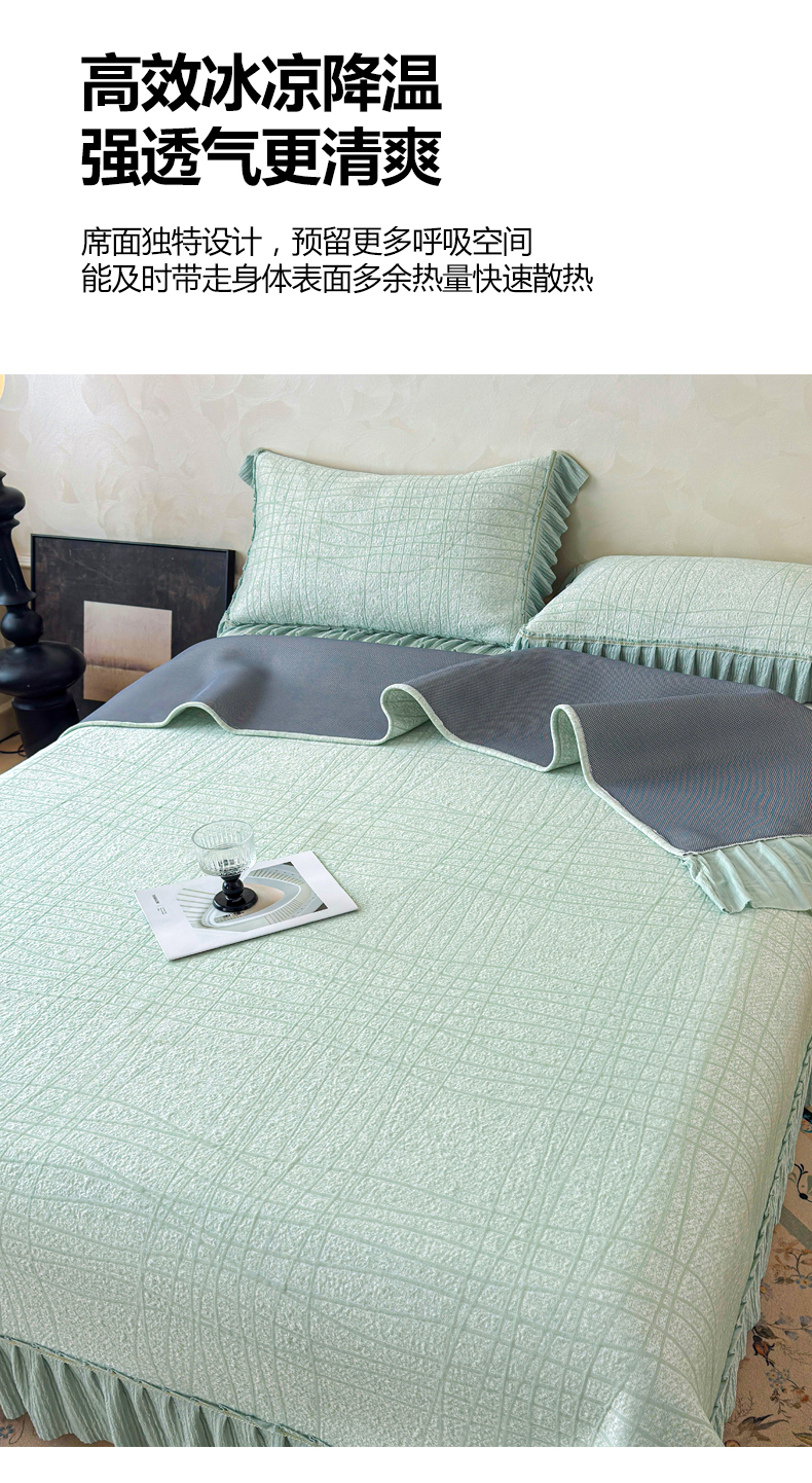 慕木家纺 2026新款满天星系列冰豆豆凉席(三明治复合)乙纶面料 罗马曲线-绿