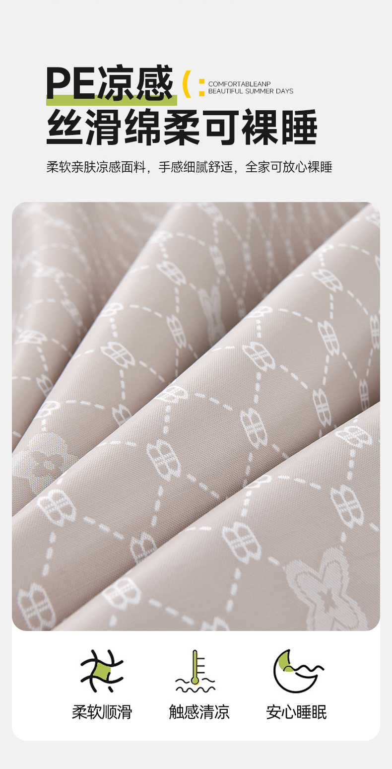 (总)小牛席业 2026新款柠檬清凉冰丝席凉席席子双PE高凉感提花绣花冰丝席,粉色,灰色,蓝色,香槟