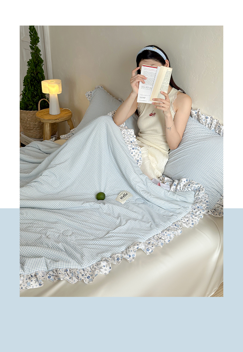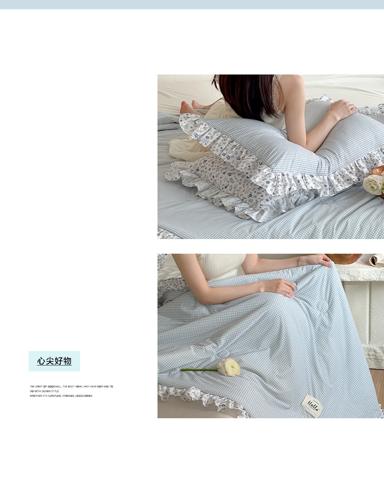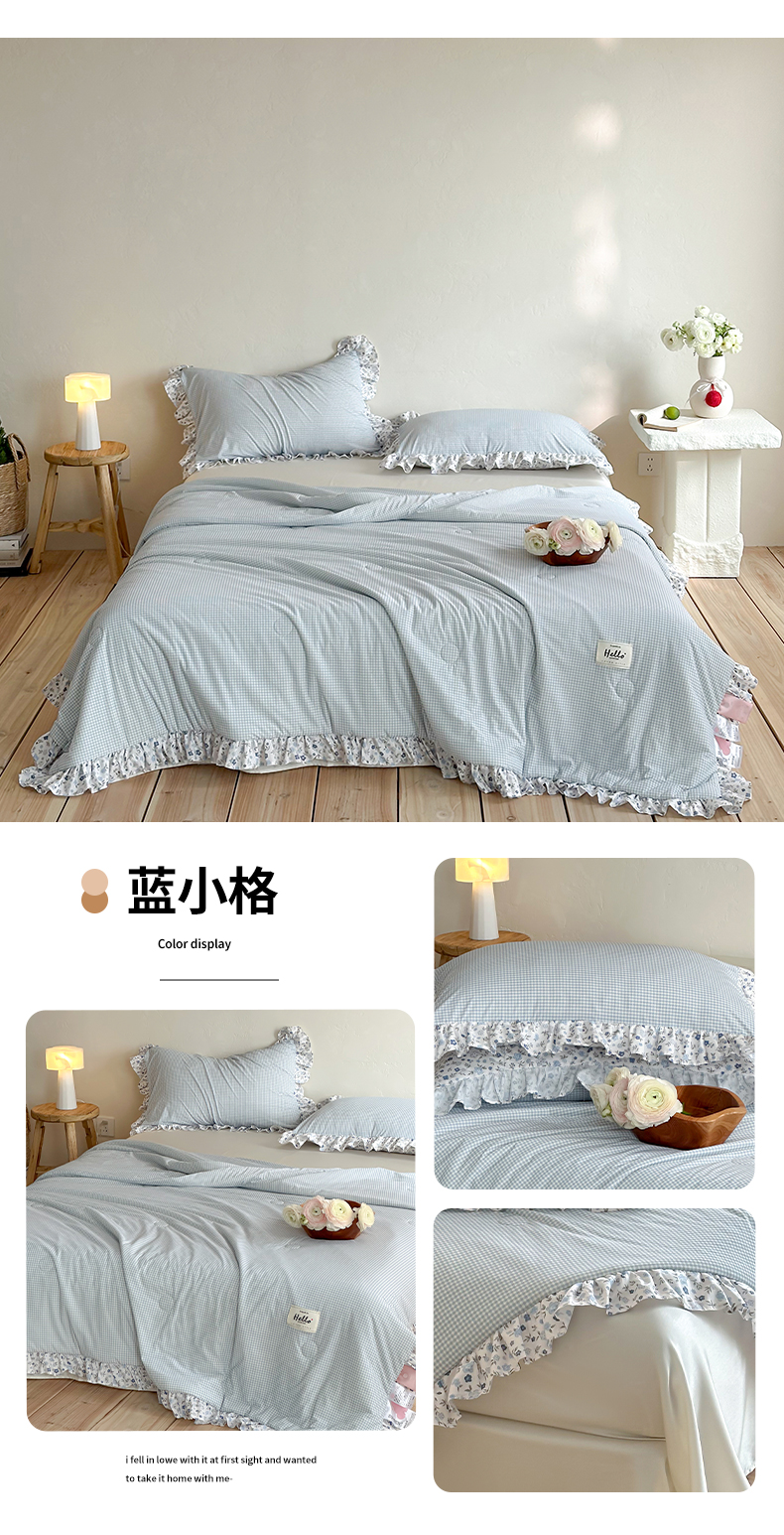(总)RYB红黄兰 2026新款ins风夏被A类冰皮凉感夏凉被花边空调被,蓝小格,粉小格,绿小格,组合图