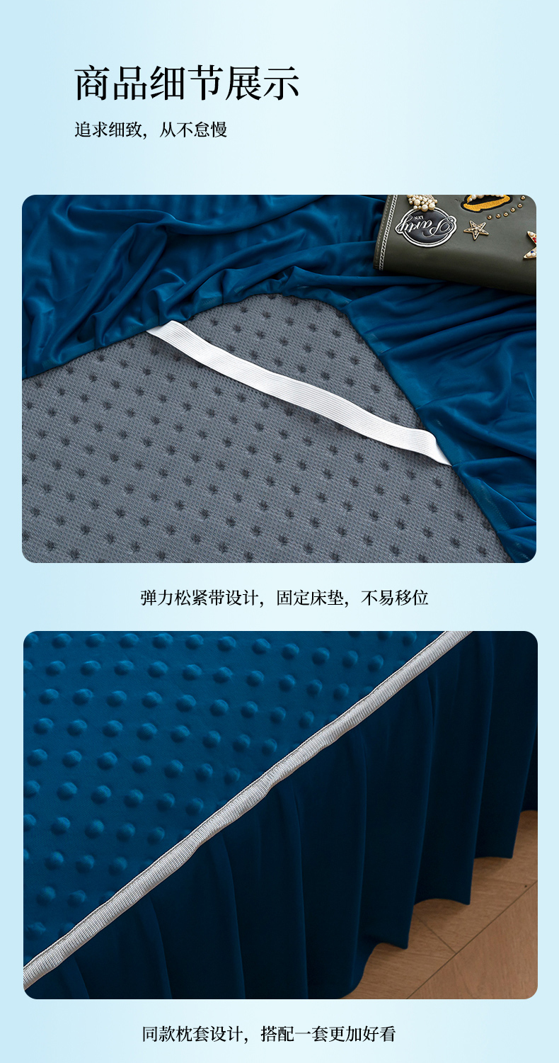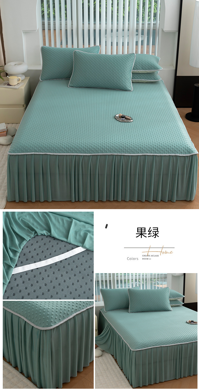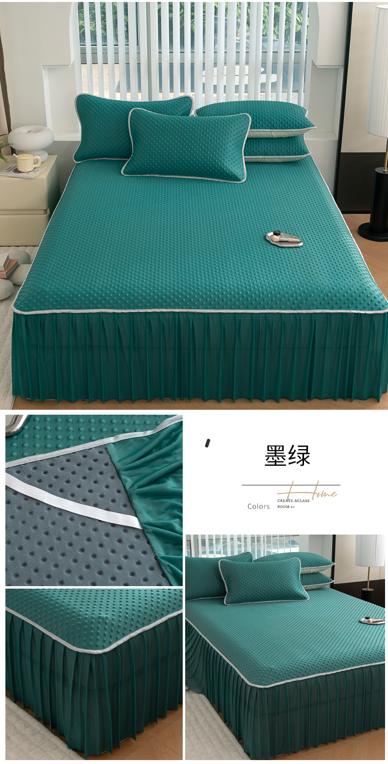 商品名称:默忆 2026新款3DA类直播网红热款凉感丝冰豆豆三明治复合床裙款凉席三件套 墨绿