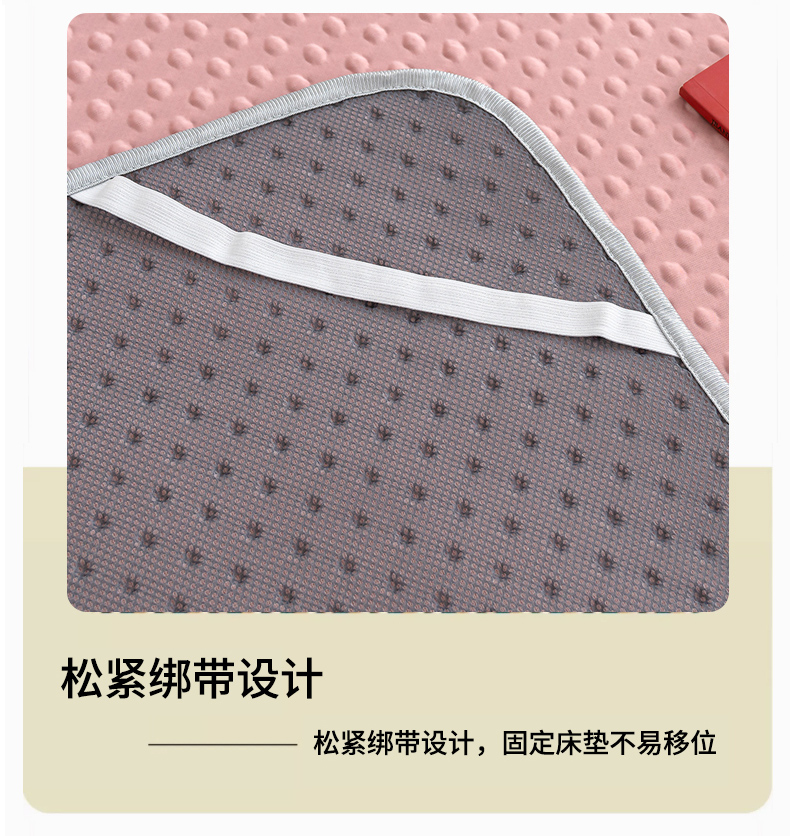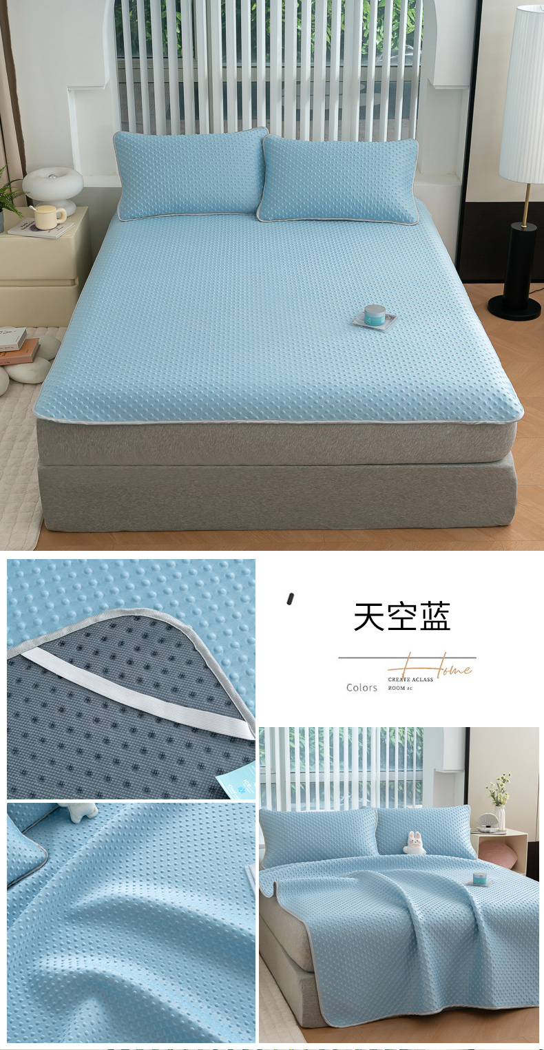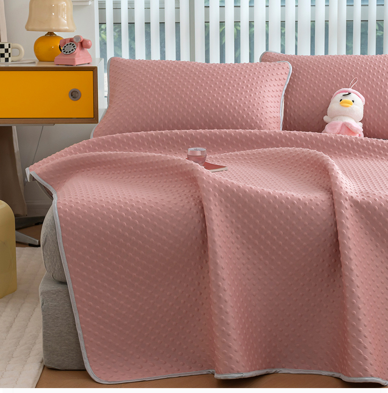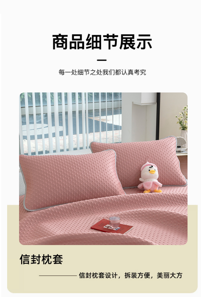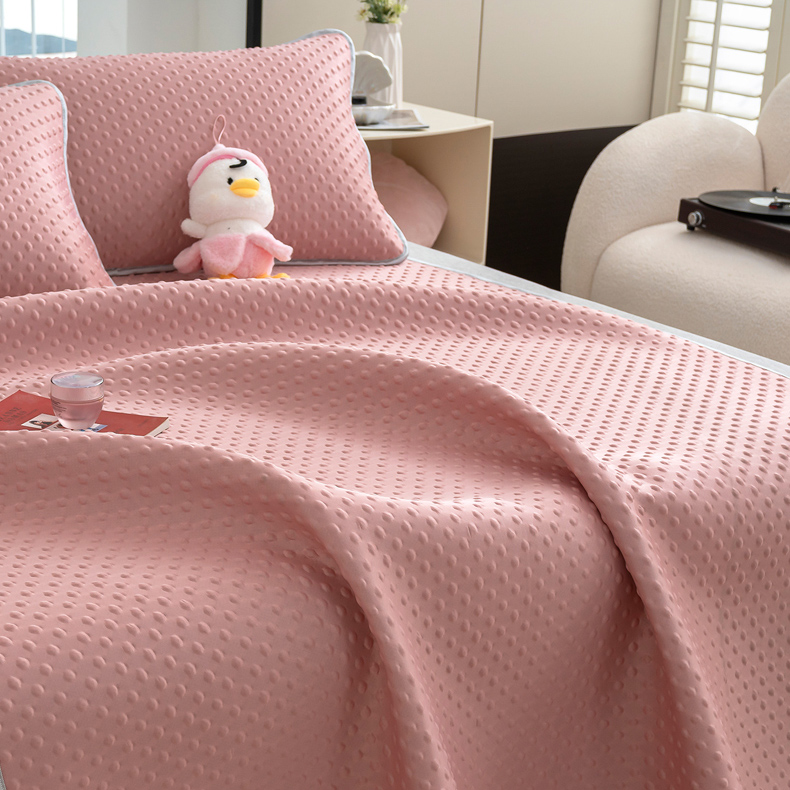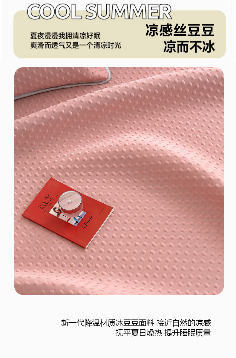 商品名称:默忆 2026新款3D轻奢风A类直播网红热款凉感丝冰豆豆三明治复合床单款凉席两件套三件套 时尚粉