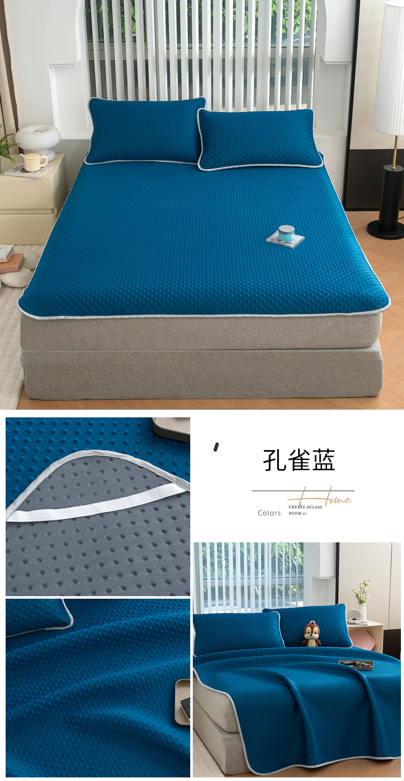 (总)默忆 2026新款3DA类直播网红热款凉感丝冰豆豆三明治复合床裙款凉席三件套,果绿,贵族灰,孔雀蓝,墨绿,时尚粉,天空蓝,香芋紫,熏衣紫
