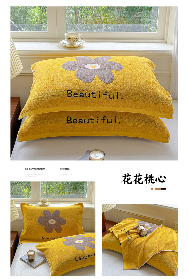 商品名称:乐家毛巾被(工厂自产自销) 2026新款A类全棉纯棉色织提花抗菌毛圈枕巾 五瓣花黄