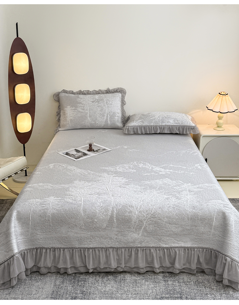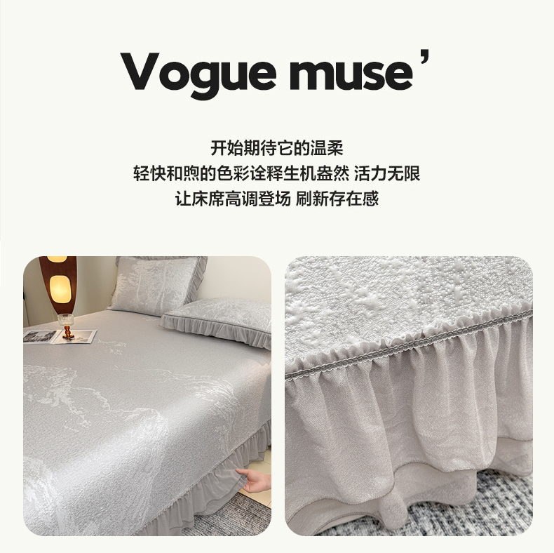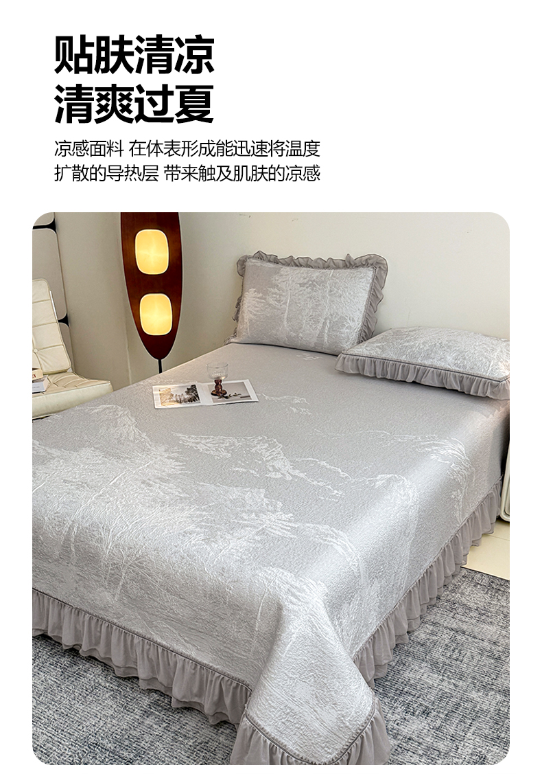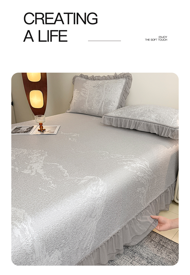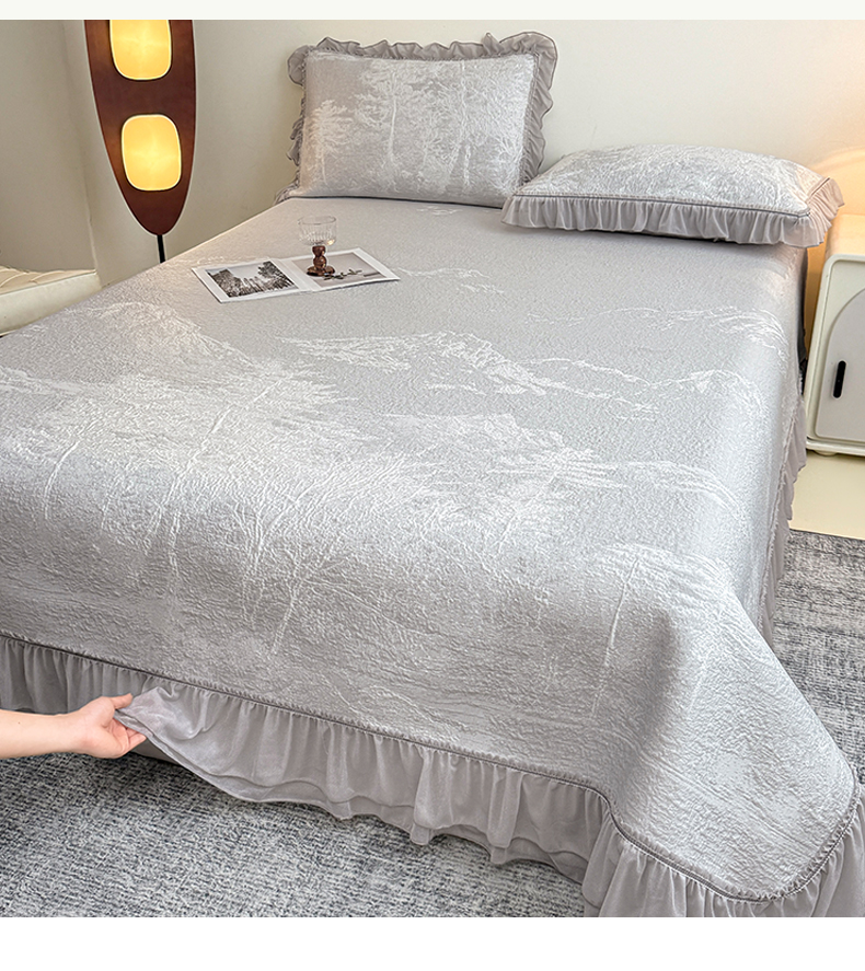 慕木家纺 2026新款A类三明治复合乙纶提花冰豆豆花边床盖款床裙水墨丹青系列(提供买家秀) 水墨丹青-灰