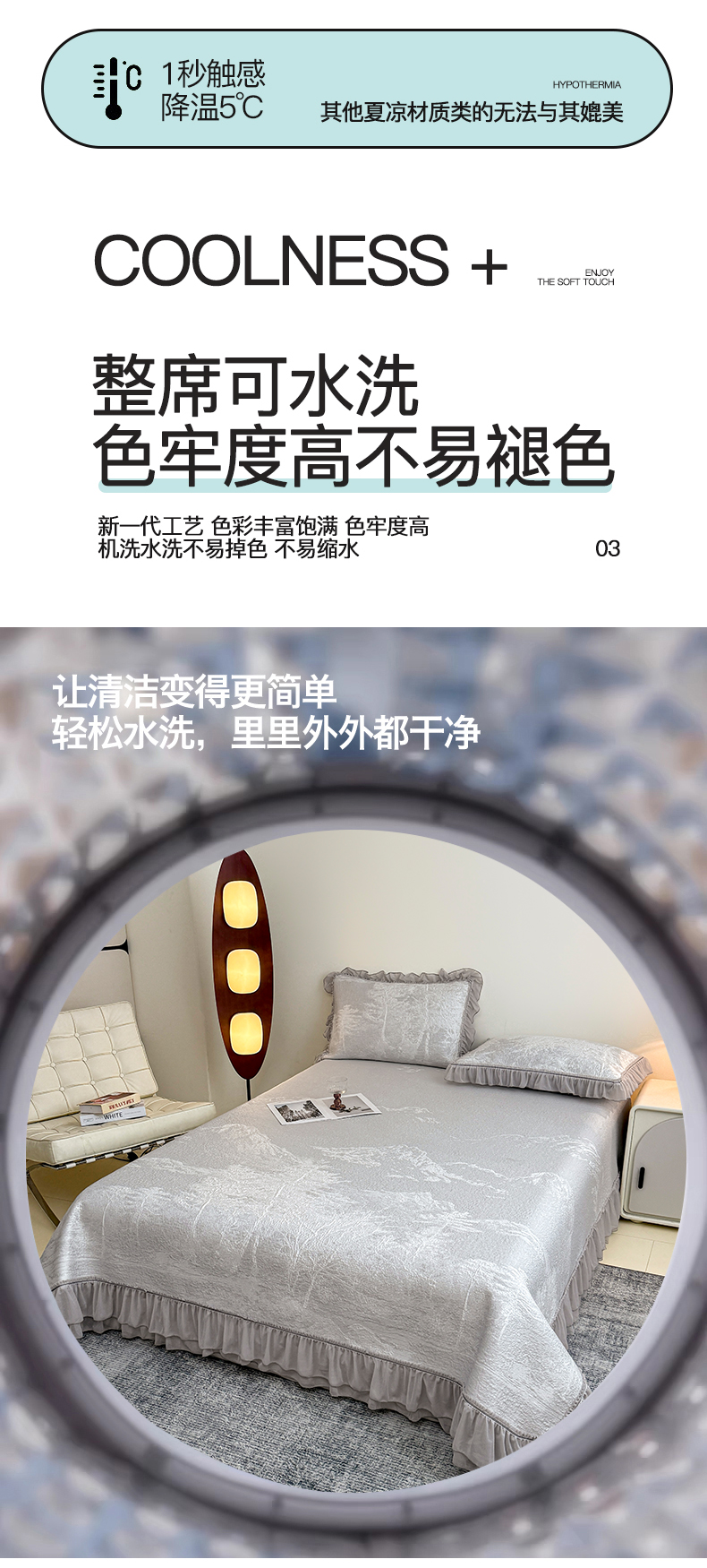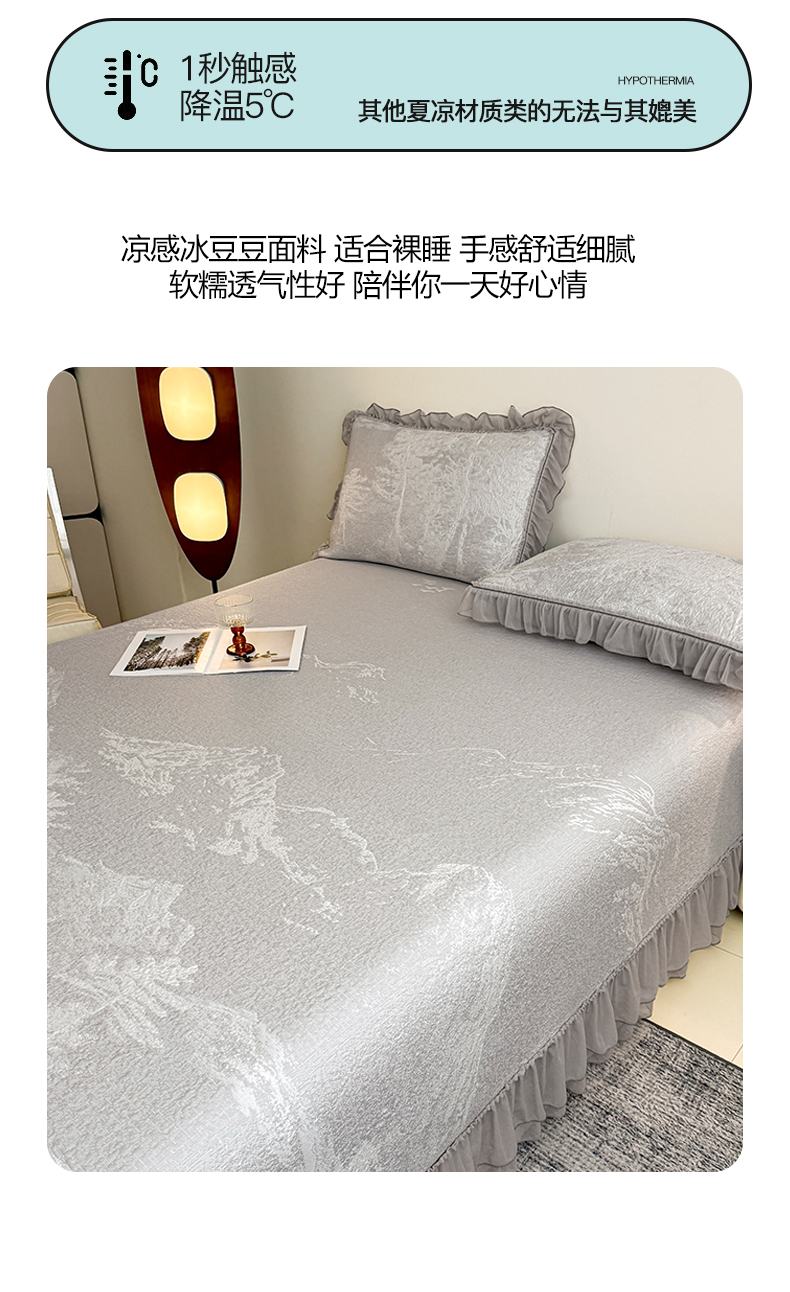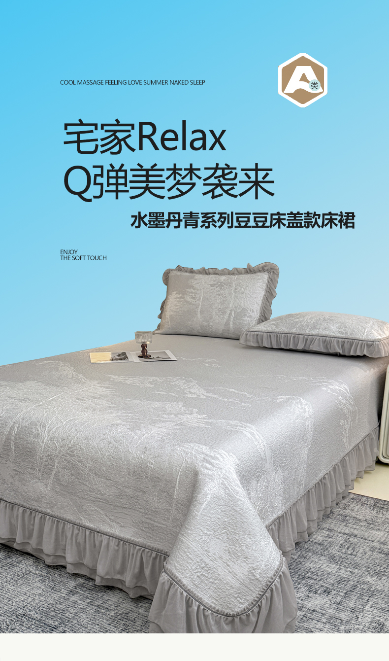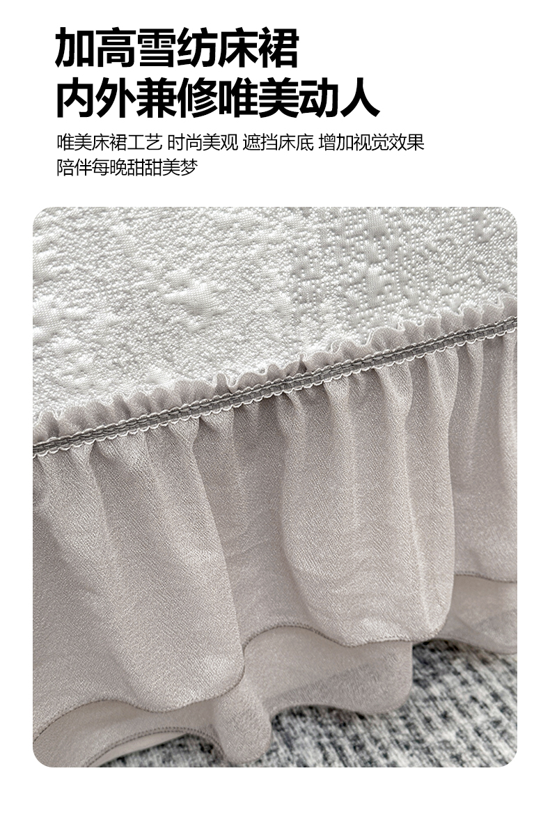 慕木家纺 2026新款A类三明治复合乙纶提花冰豆豆花边床盖款床裙水墨丹青系列(提供买家秀) 水墨丹青-灰