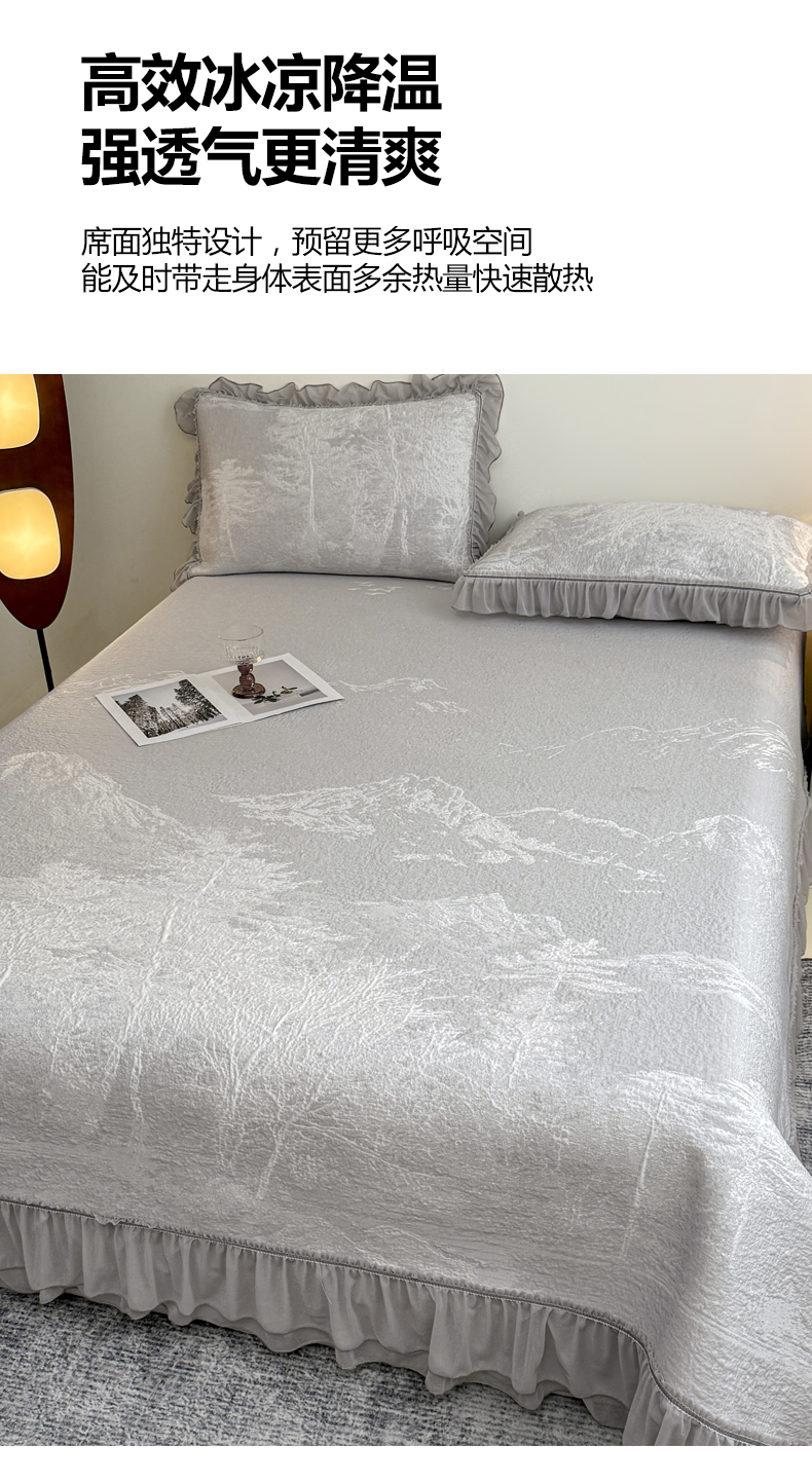 商品名称:慕木家纺 2026新款A类三明治复合乙纶提花冰豆豆花边床盖款床裙水墨丹青系列(提供买家秀) 水墨丹青-灰