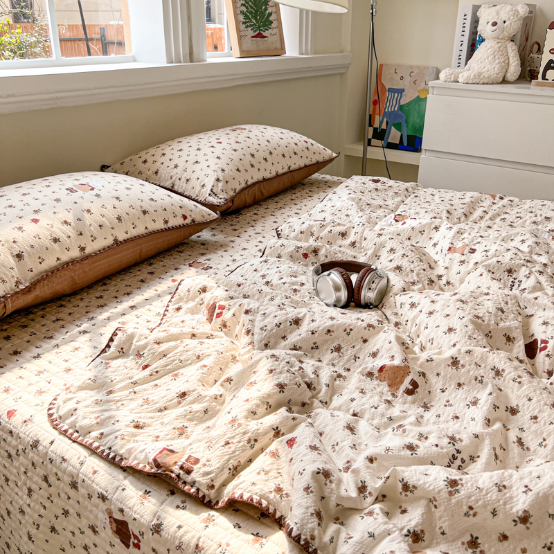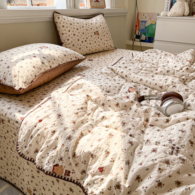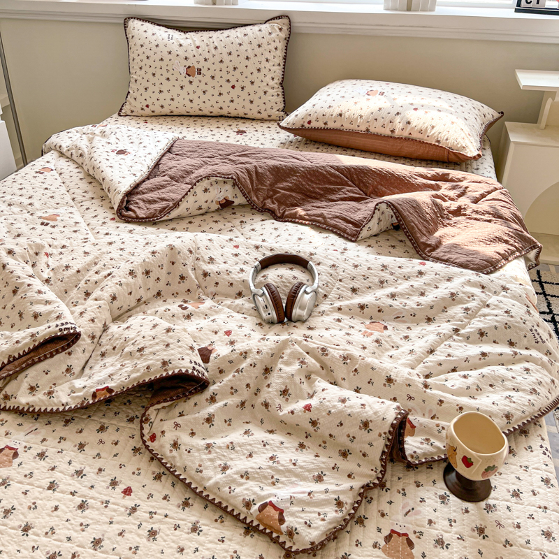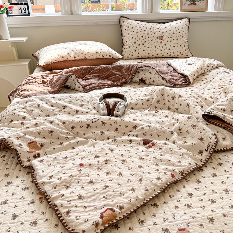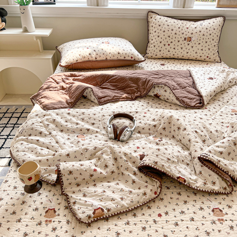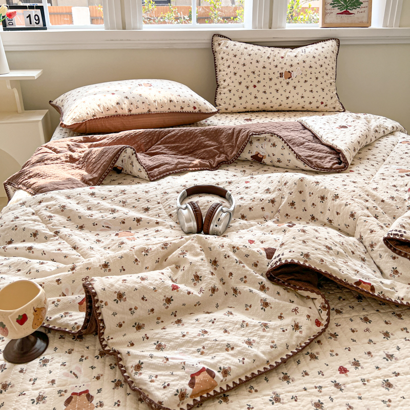 禾沐 2026新款泡芙纱三角针床盖夏被四件套 田园兔