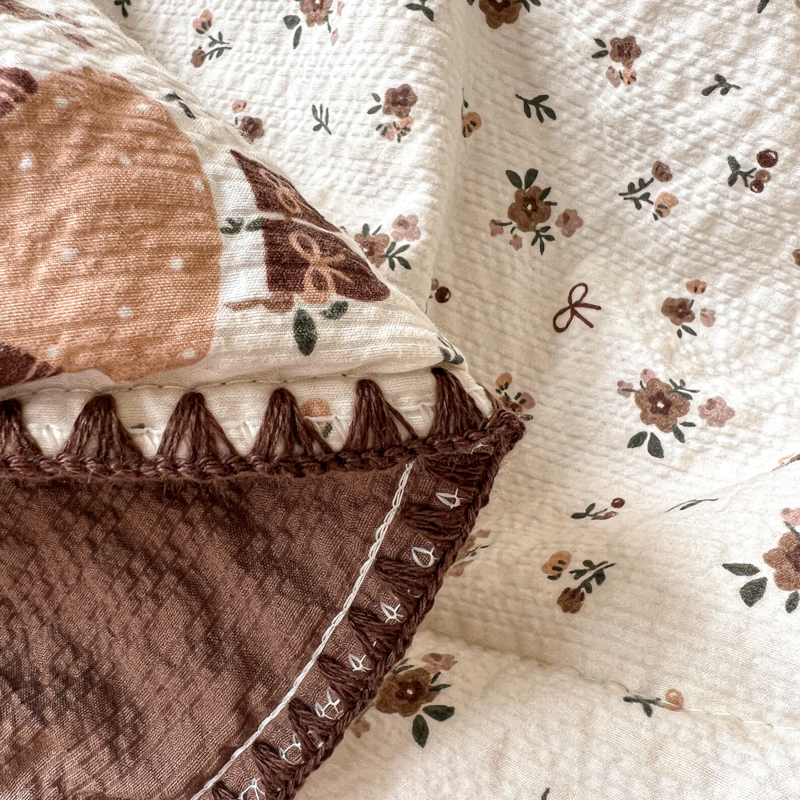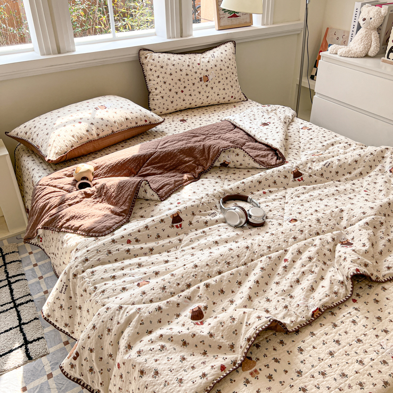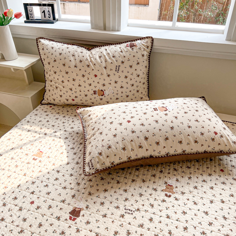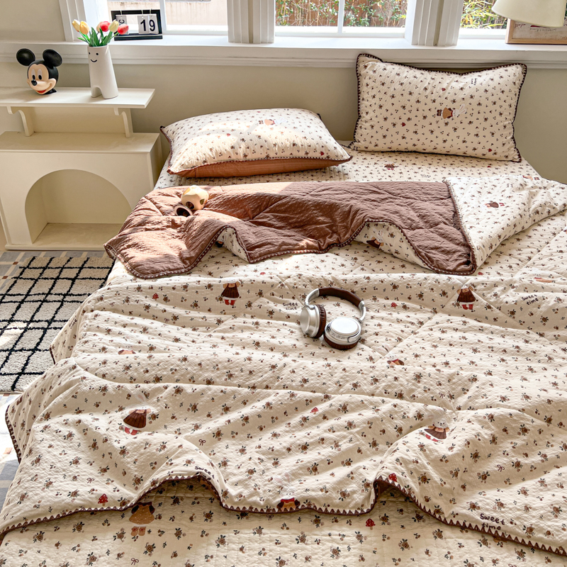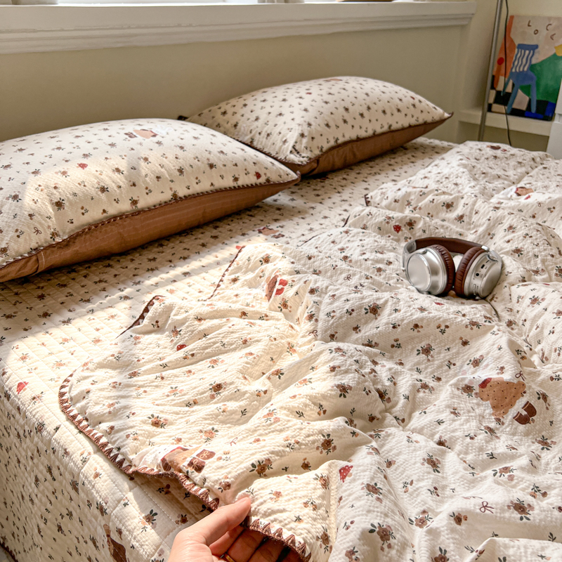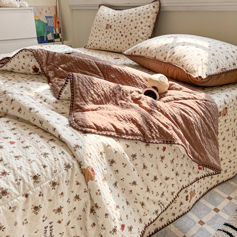 禾沐 2026新款泡芙纱三角针床盖夏被四件套 田园兔