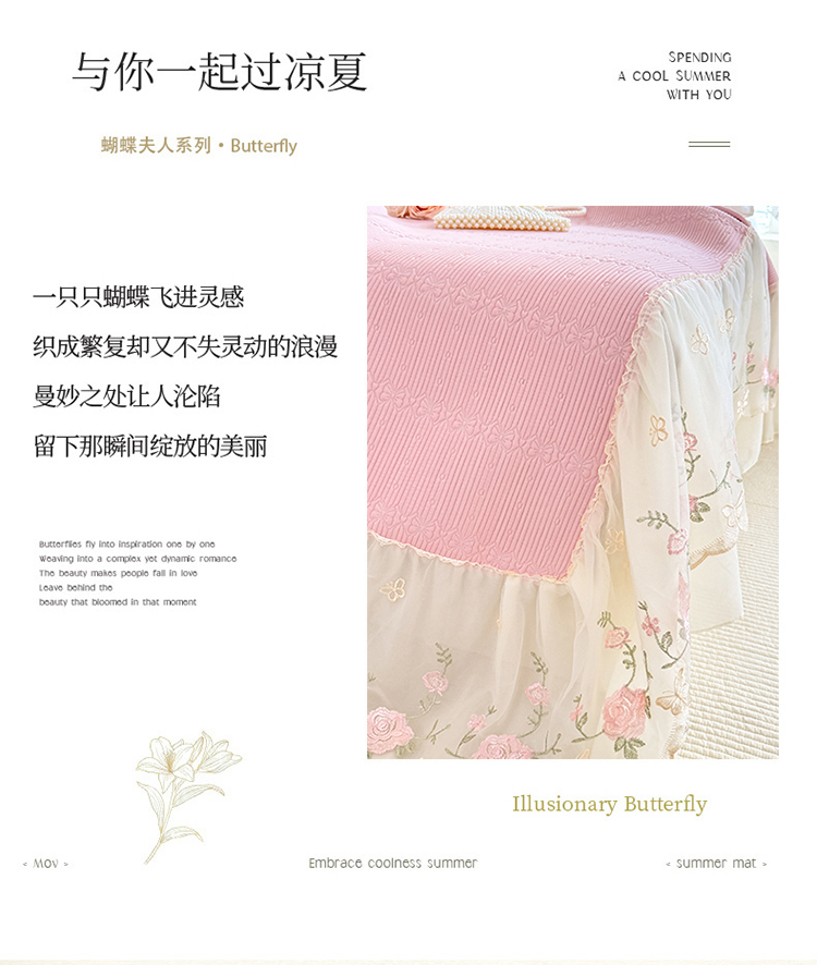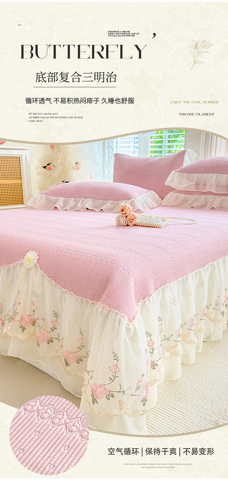 商品名称:苏米娜家纺SUMINA 2026新款PE高分子弯边工艺床裙款凉席三件套-可心 可心-粉黛