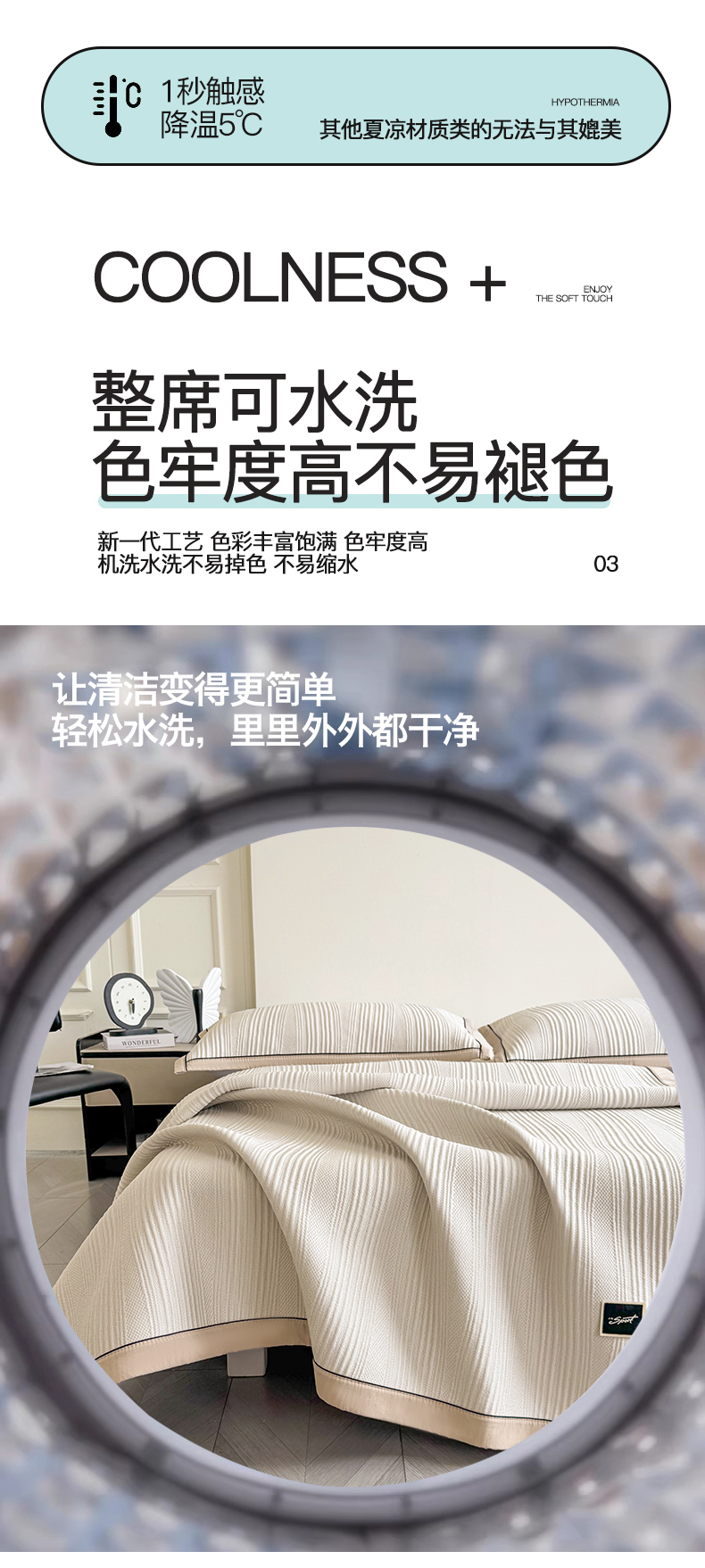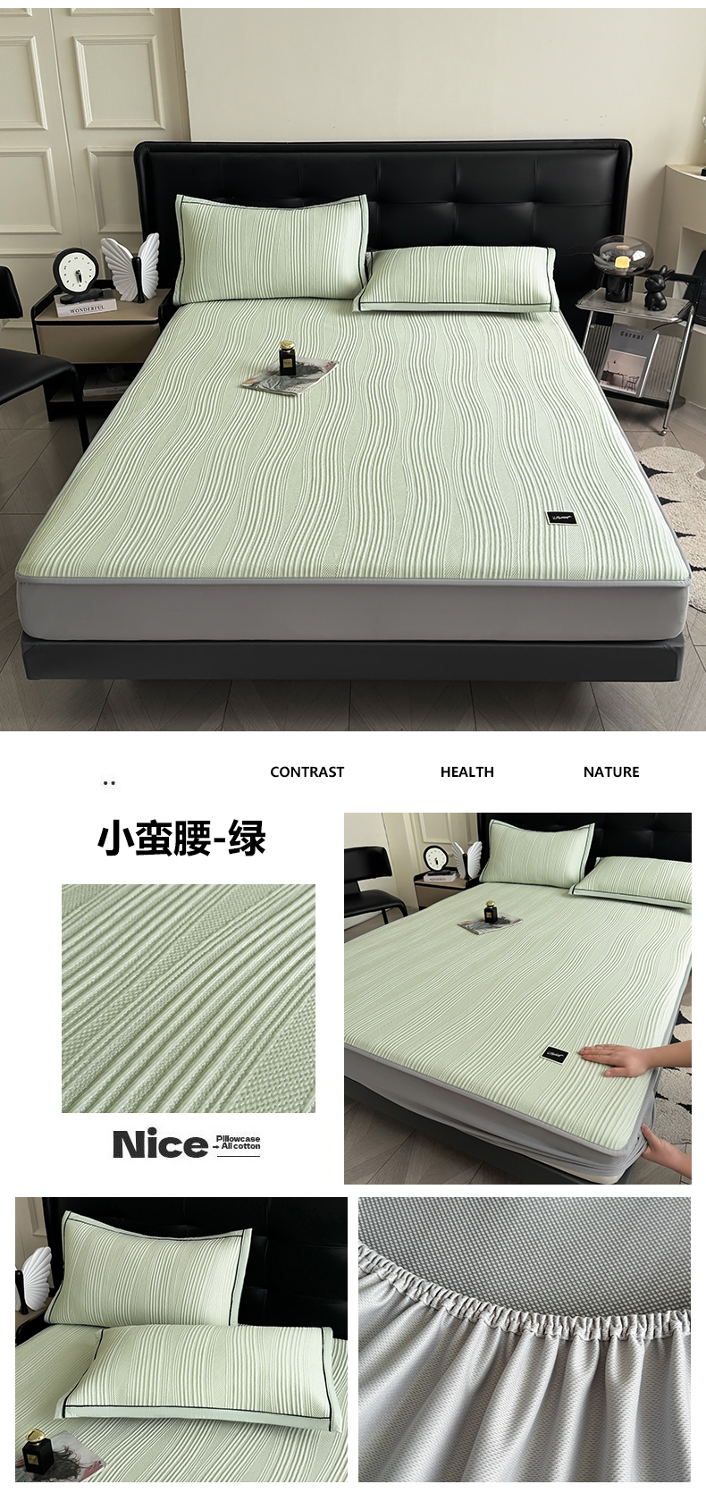 当前位置: 91家纺网 > 商品网购 > 床上用品 > 凉席 > 其他凉席 > 耐思家纺 2026新款A类高克重三明治复合乙纶提花冰豆豆凉席床笠小蛮腰系列(提供买家秀) 组合床席款