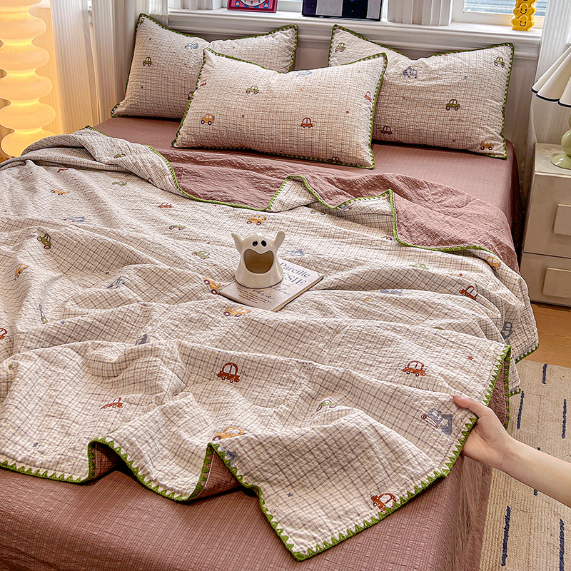 一比一家纺 2026春夏新款三角针泡芙纱夏被夏凉被空调被四件套 三角针夏被-小汽车