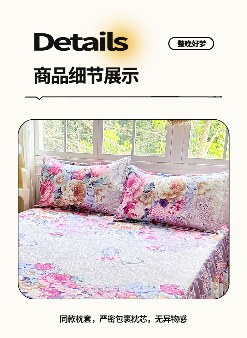 (总)亿佳人 2026新款芦荟棉化纤四件套单床裙单枕套-床裙款四件套