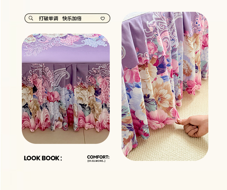 (总)亿佳人 2026新款芦荟棉单床裙床裙单件芦荟棉床裙三件套,鸿运,花开富贵,花颜悦色,酒红玉枝,乐开花,香飘四溢,紫梦,紫气东来