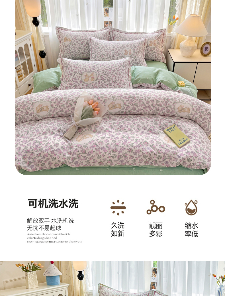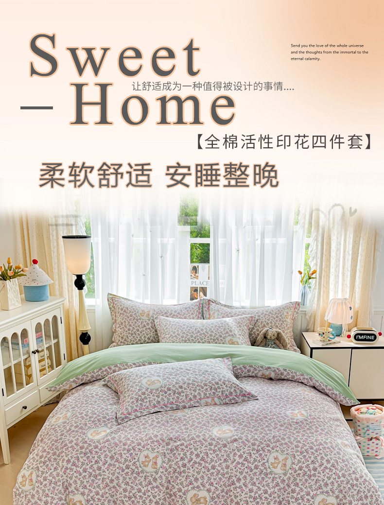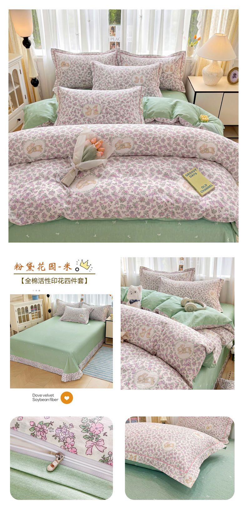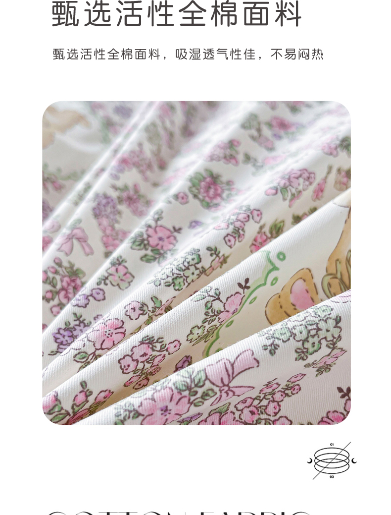 当前位置: 91家纺网 > 商品网购 > 床品套件 > 四件套 > 全棉普通四件套 > 美织缘家纺 2026直播爆款一字绣吊边床单款纯棉全棉四件套印花百分百(喷气高品质) 粉黛花园-米