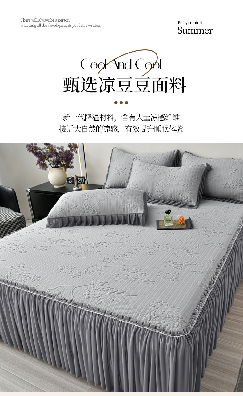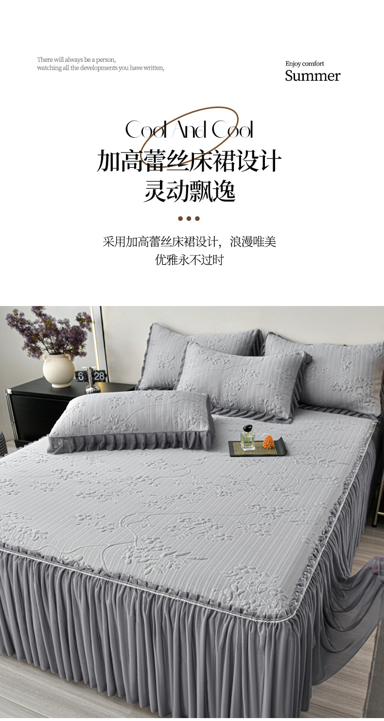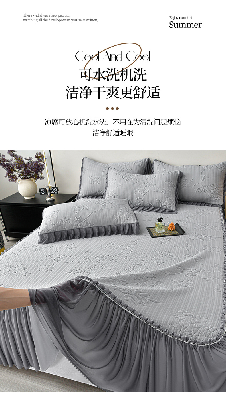 商品名称:星窝家纺 2026新款冰豆豆床裙款凉席 灰枝凝香