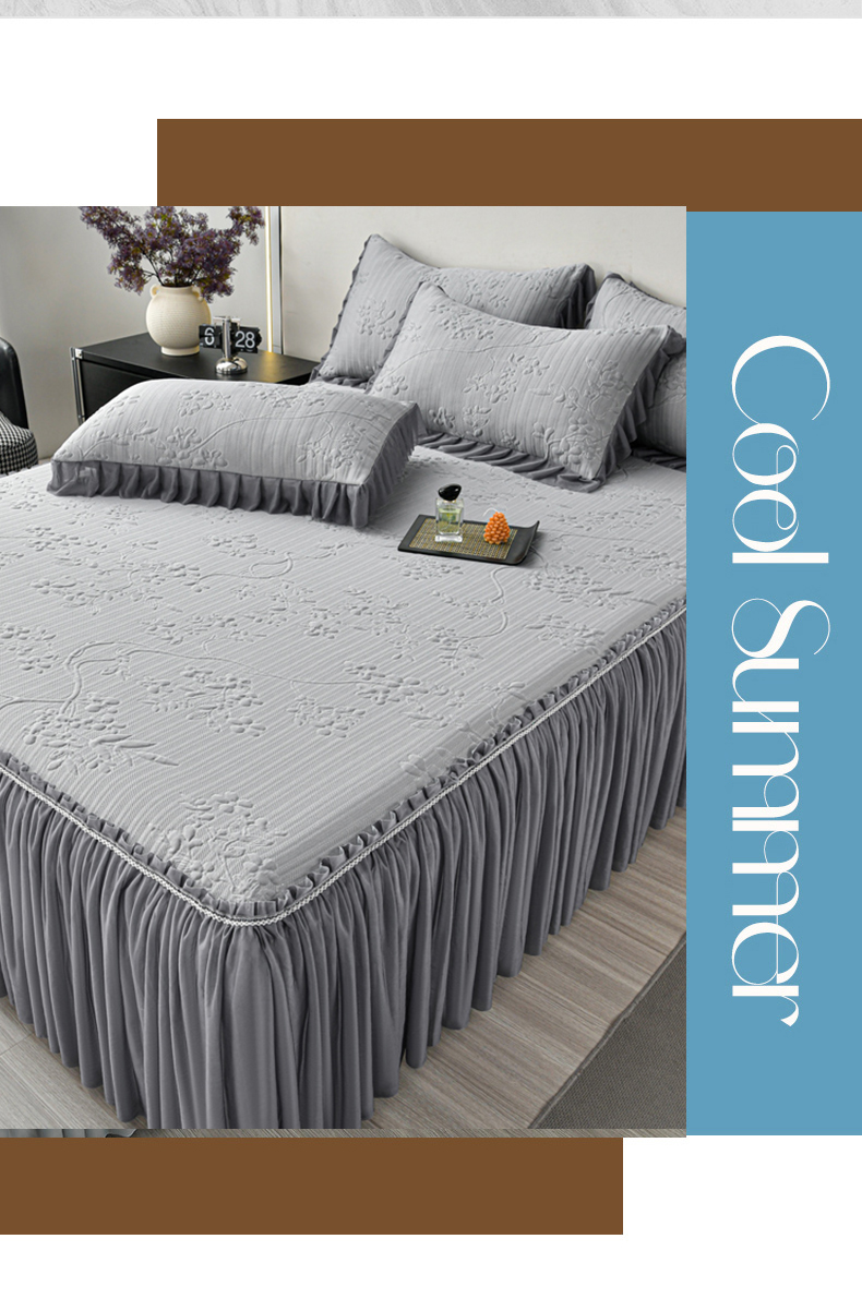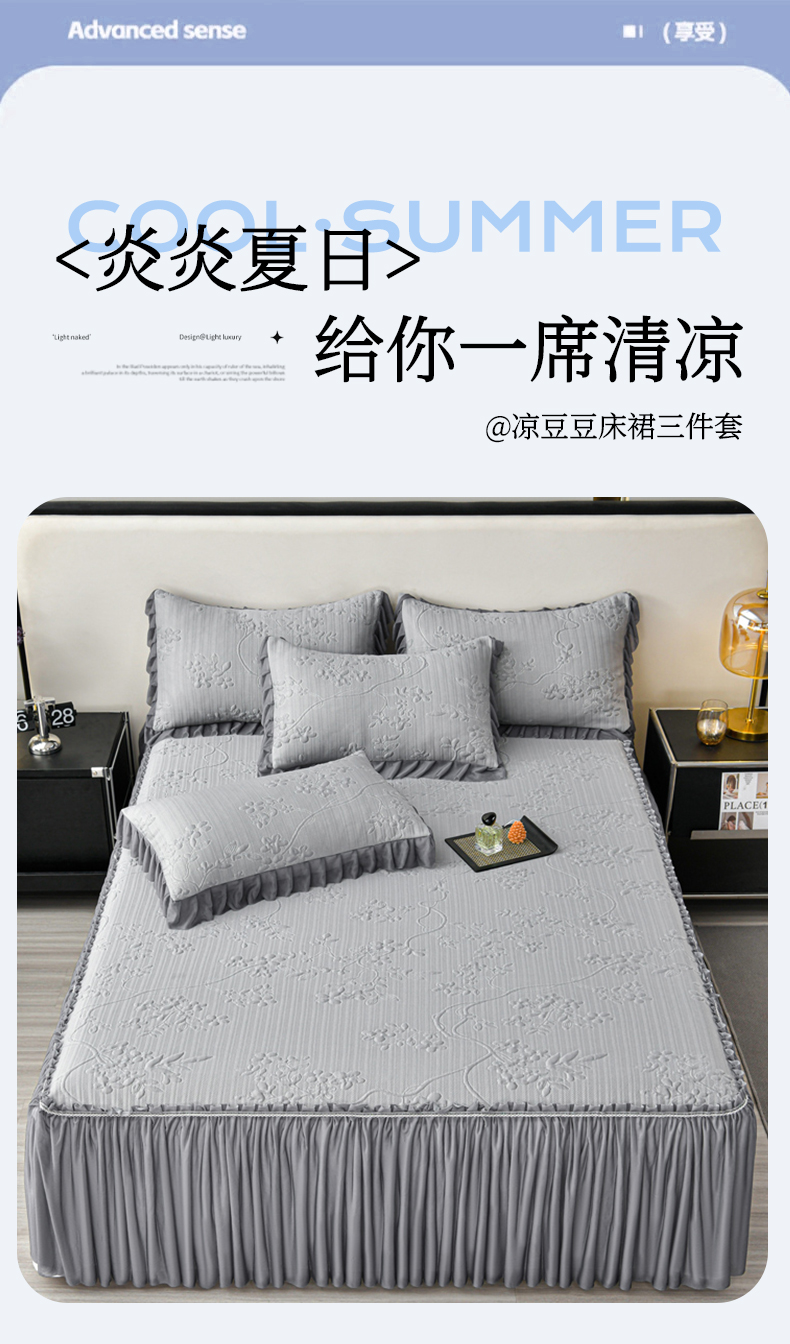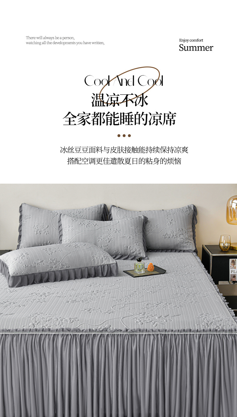 星窝家纺 2026新款冰豆豆床裙款凉席 灰枝凝香