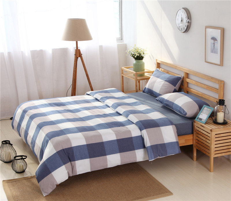 例外Home 水洗棉四件套床单款蓝大格