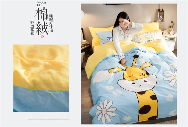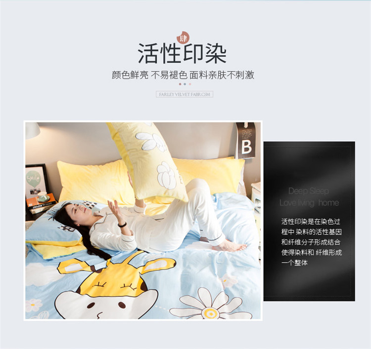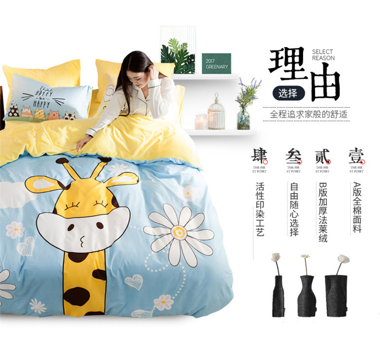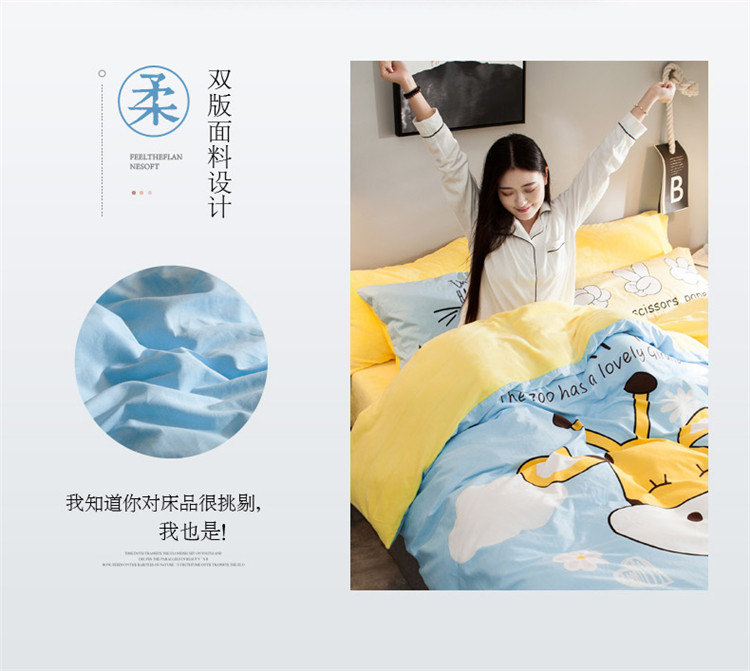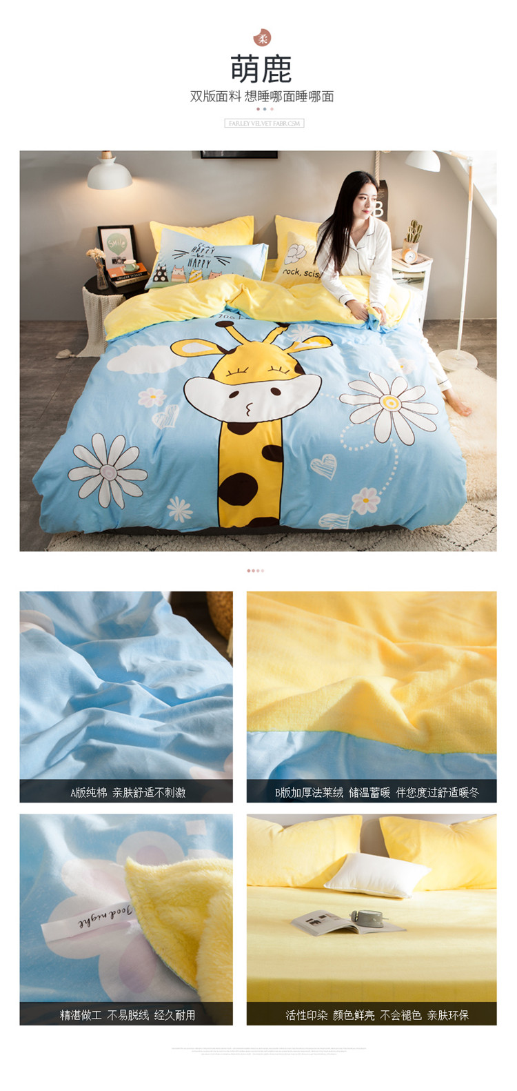 涵宸家纺 新品绒-A棉大版B法莱绒套件床单款 萌鹿