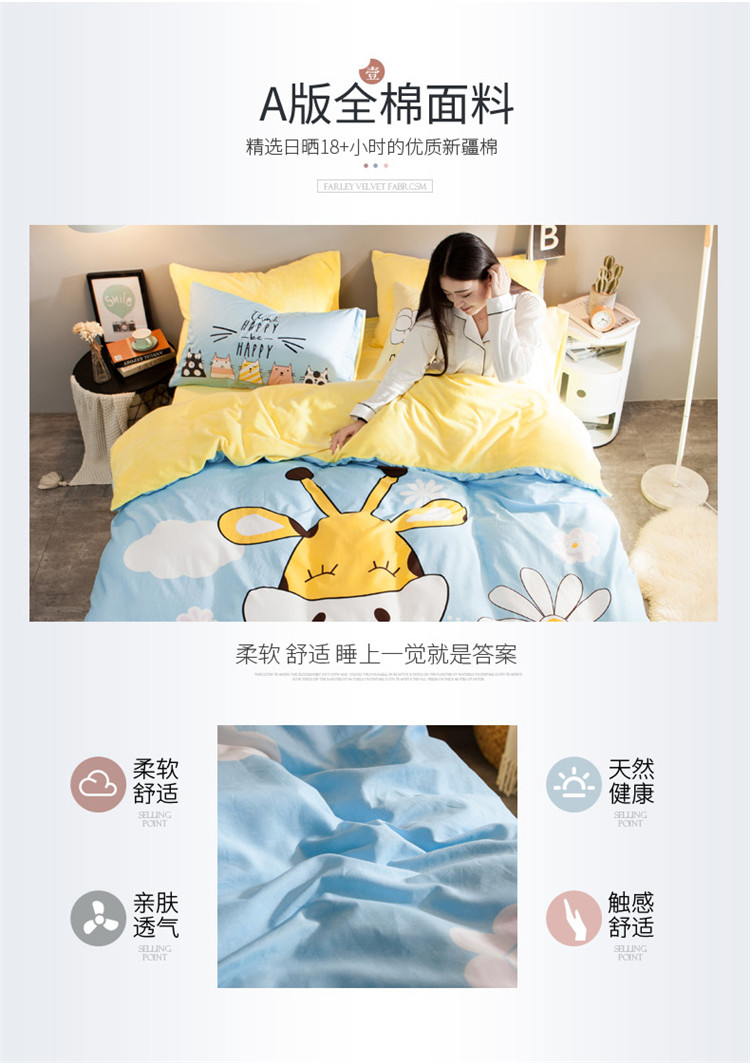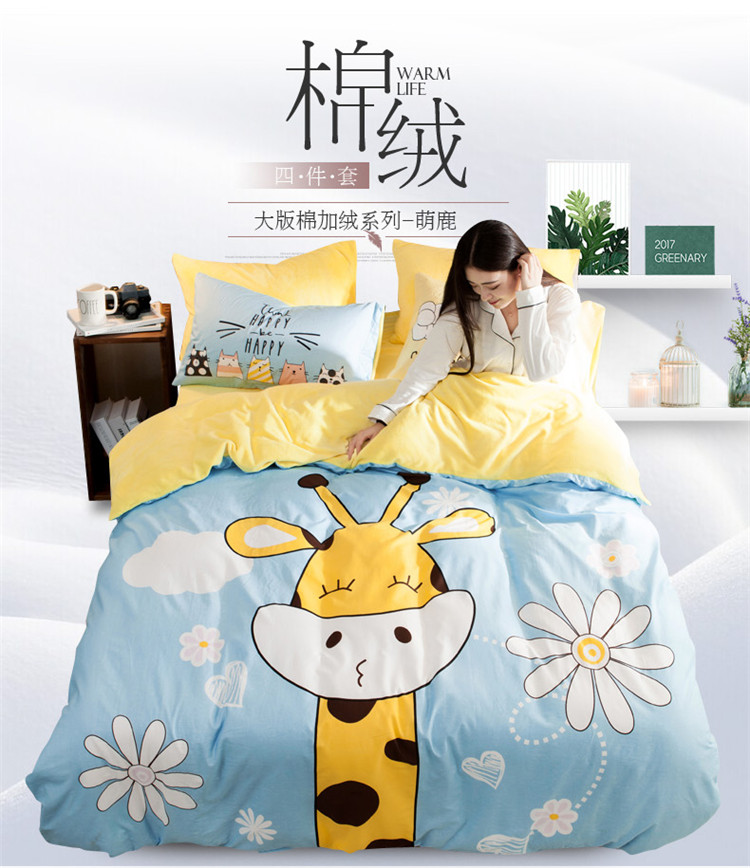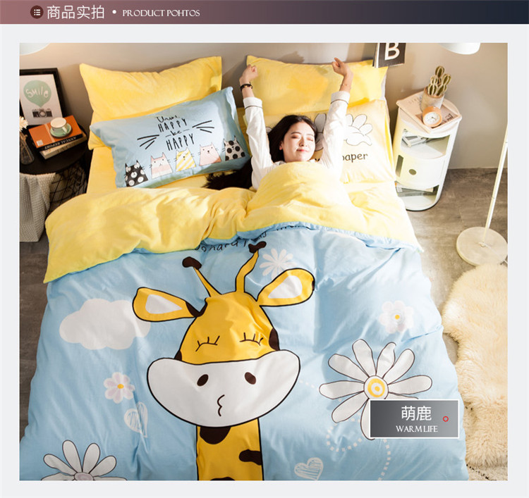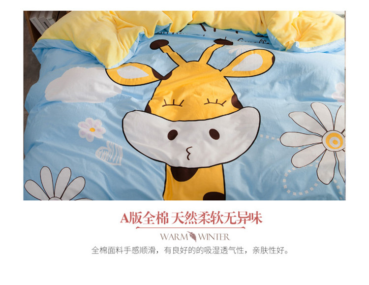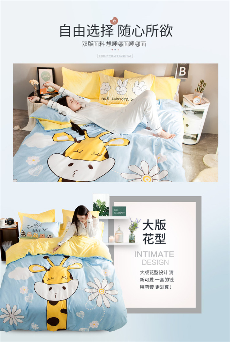 涵宸家纺 新品绒-A棉大版B法莱绒套件床单款 萌鹿