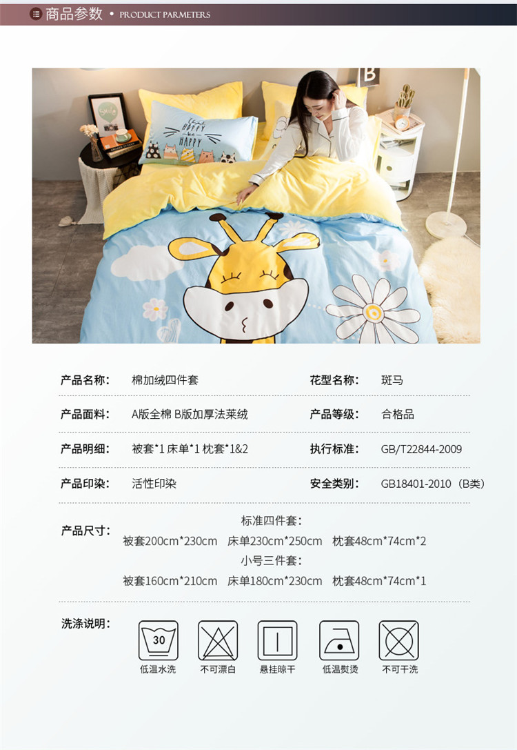 商品名称:涵宸家纺 新品绒-A棉大版B法莱绒套件床单款 萌鹿