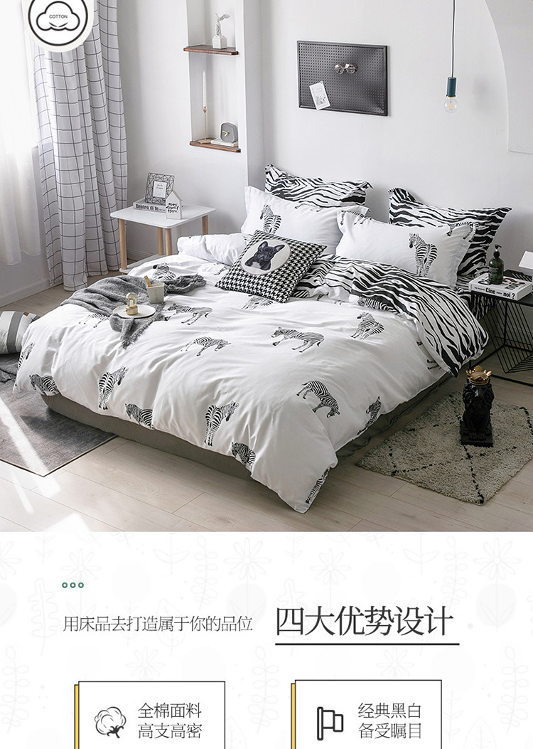 当前位置: 91家纺网 > 商品网购 > 床品套件 > 四件套 > 全棉普通四件套 > 艾佳 2025新款全棉经典黑白四件套床单款 斑马