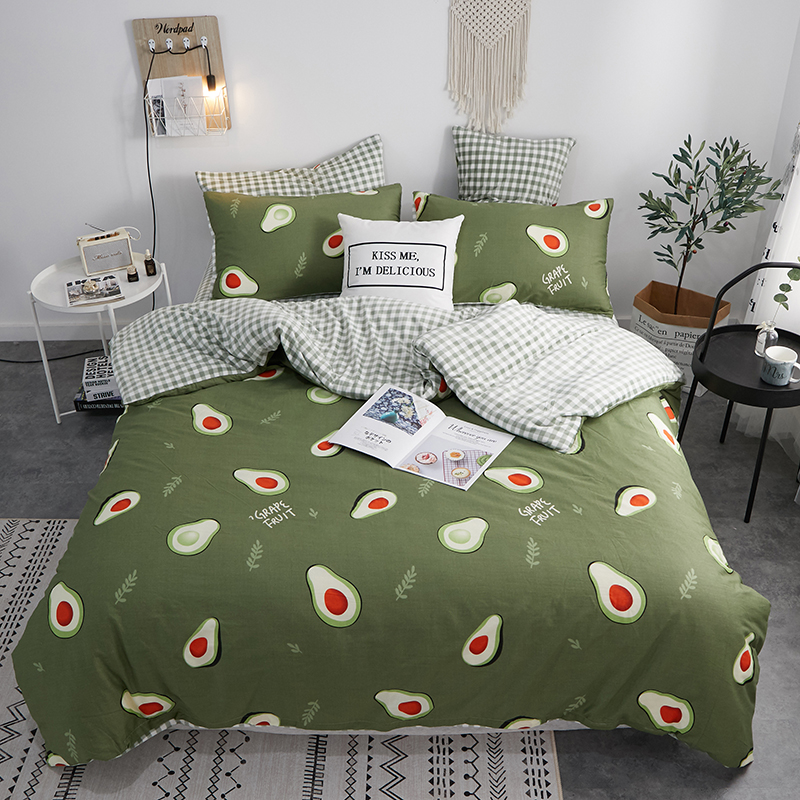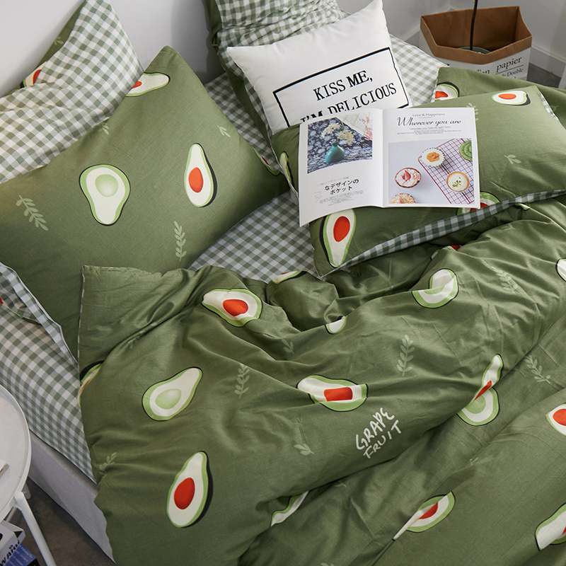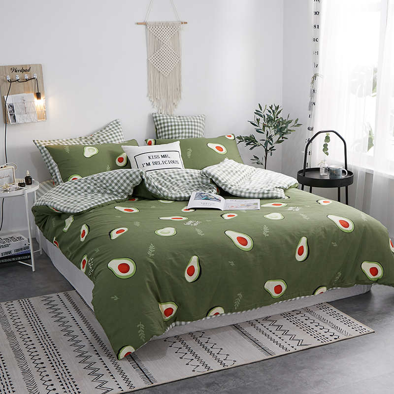 商品名称:一米阳光 2019新款A棉B格子绒四件套 格绒-牛油果