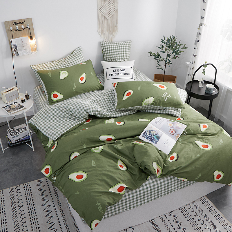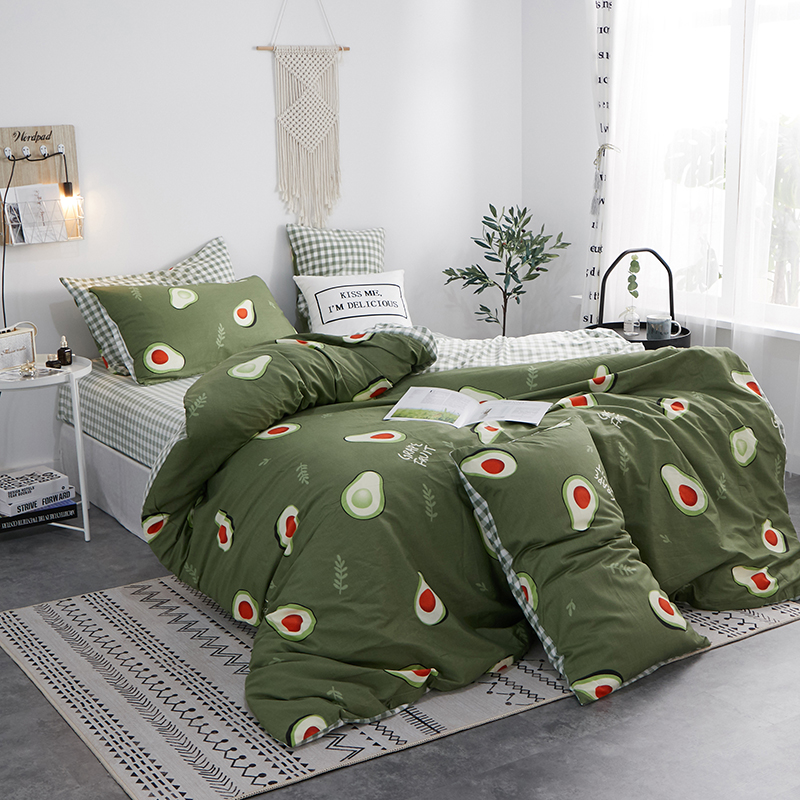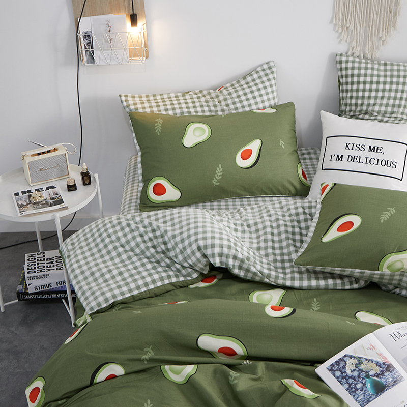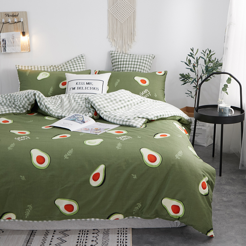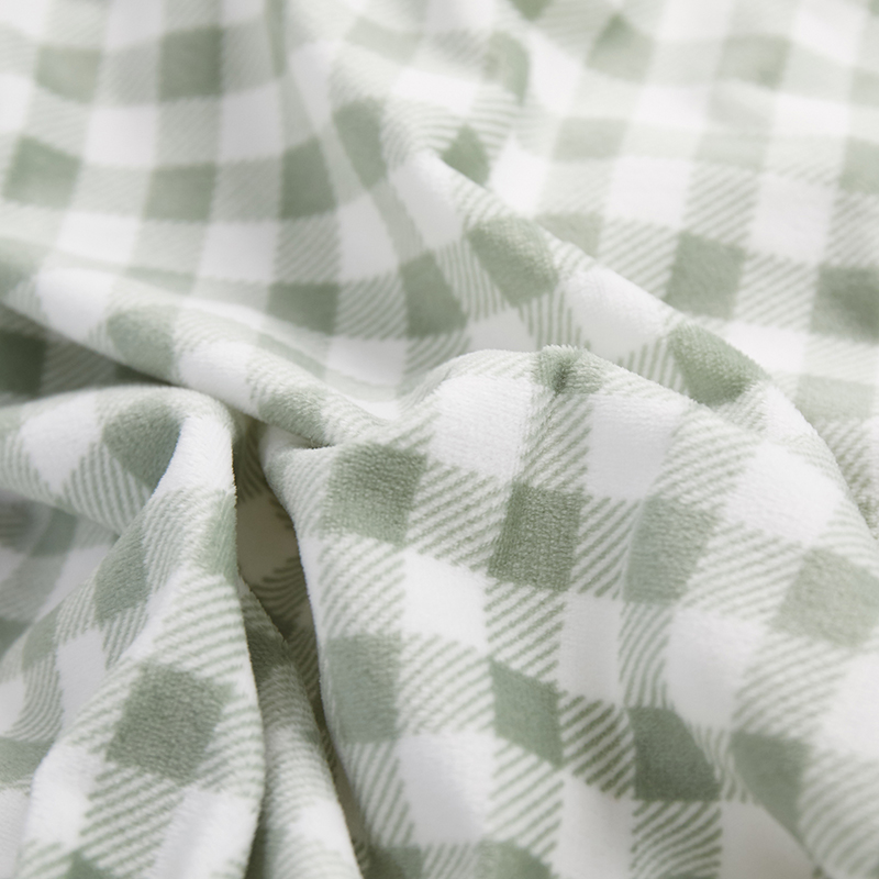 一米阳光 2019新款A棉B格子绒四件套 格绒-牛油果