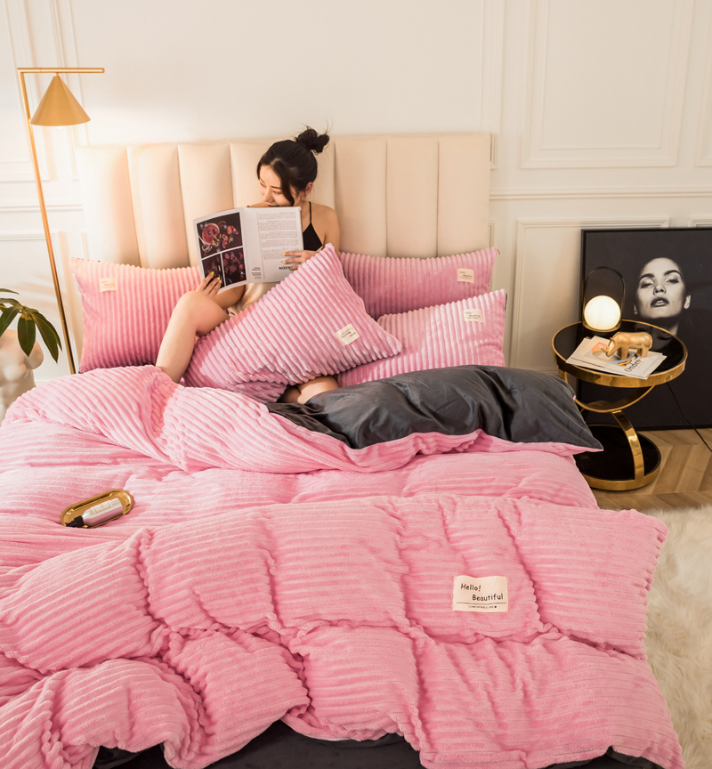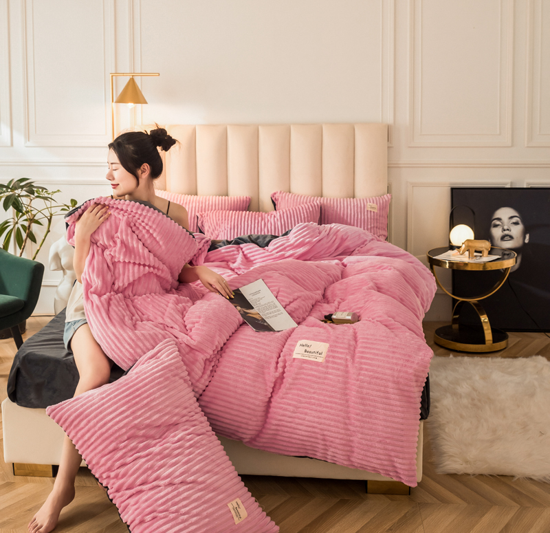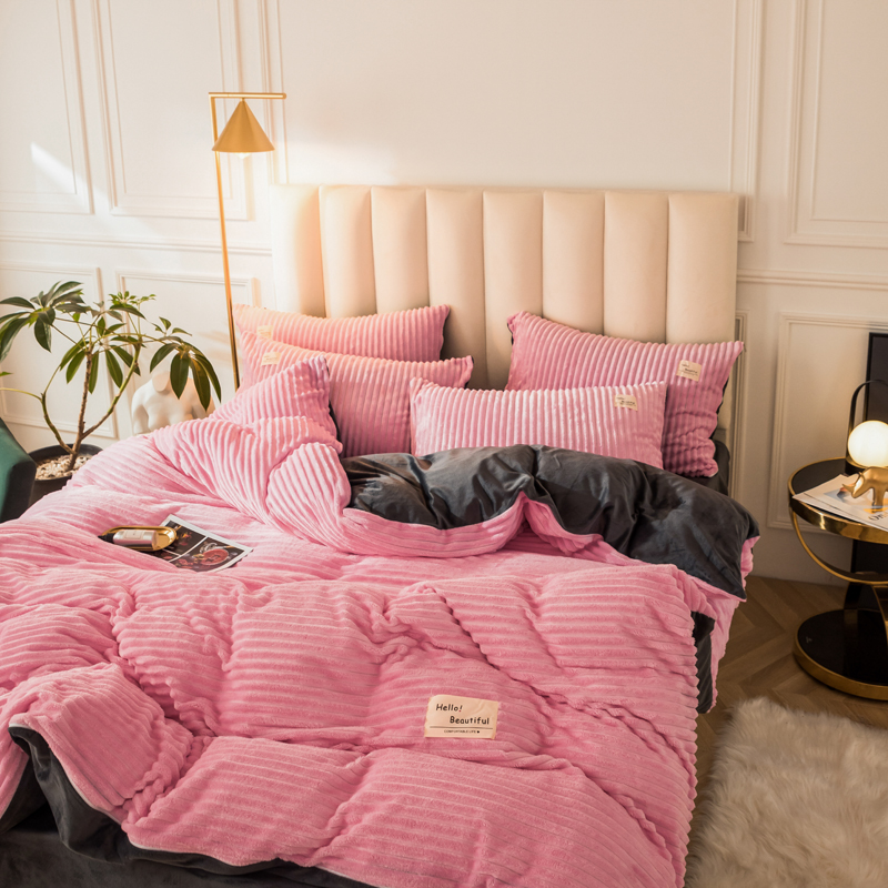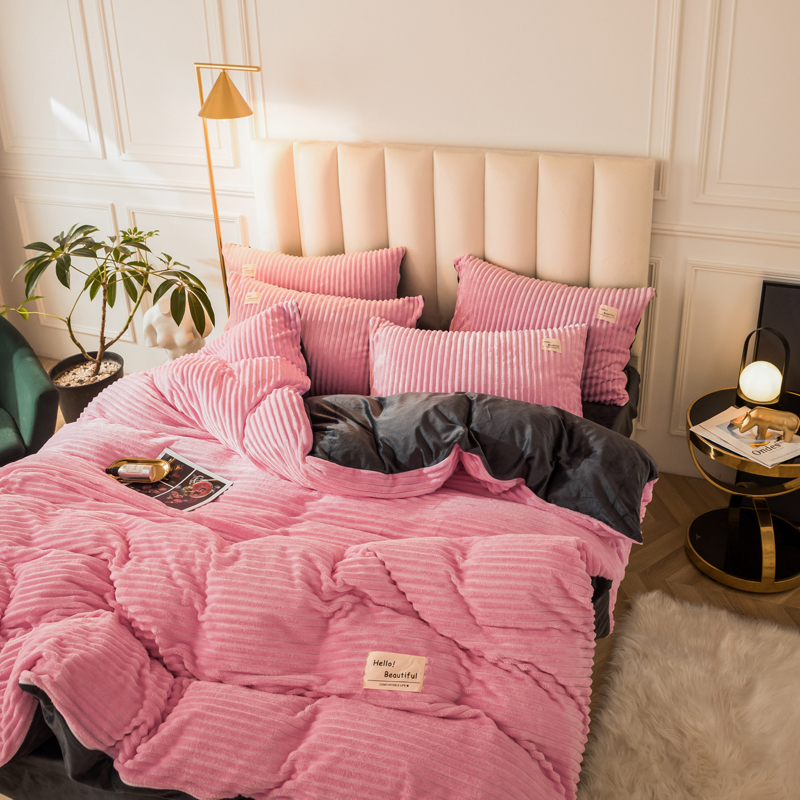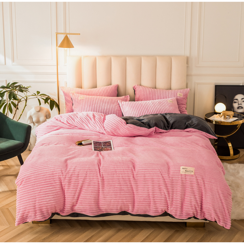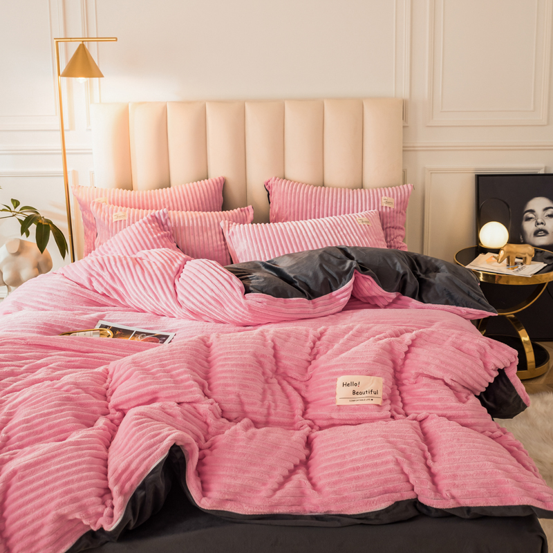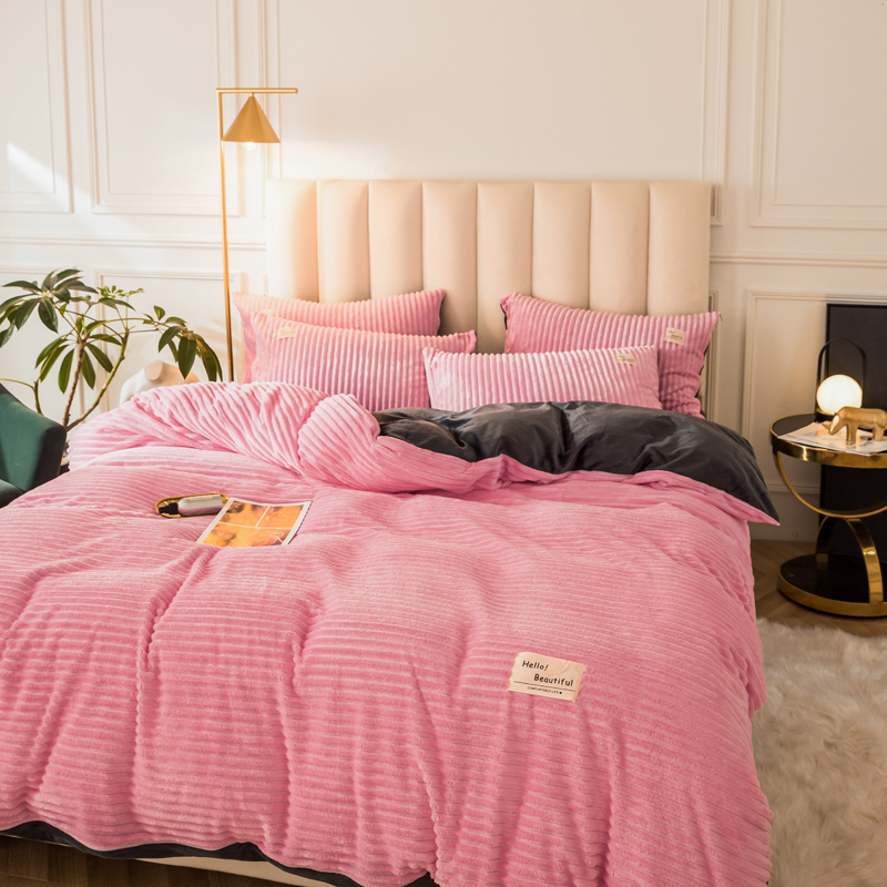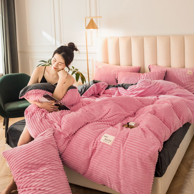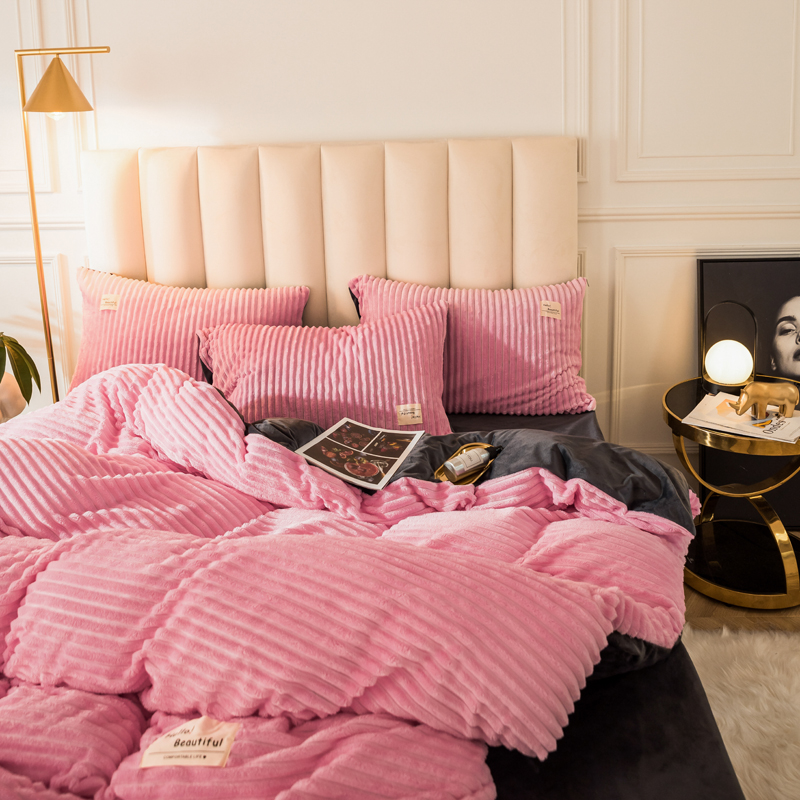 澳洲羽 加厚魔法绒水晶绒法莱绒宝宝绒魔幻绒四件套 桃花粉