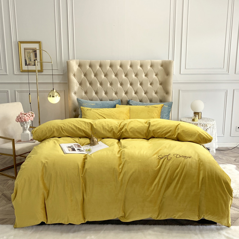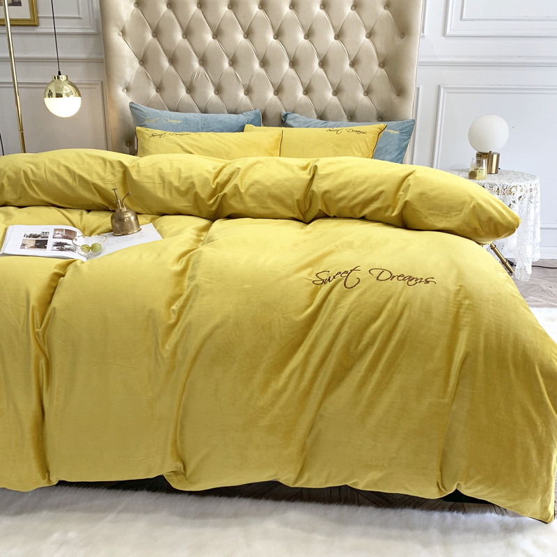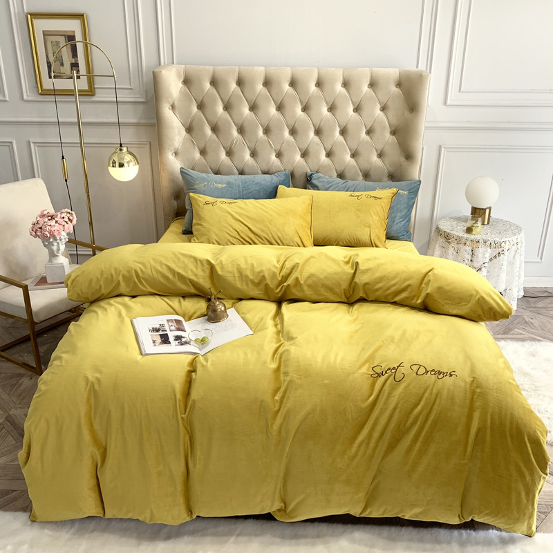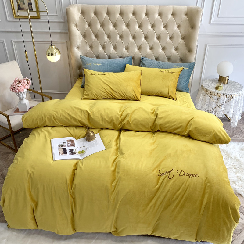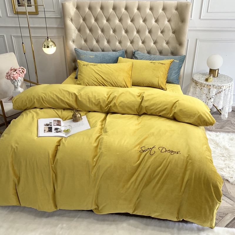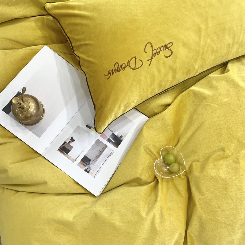 商品名称:爱缦 2019水晶绒丽丝绒绣花工艺款四件套实拍图 姜黄