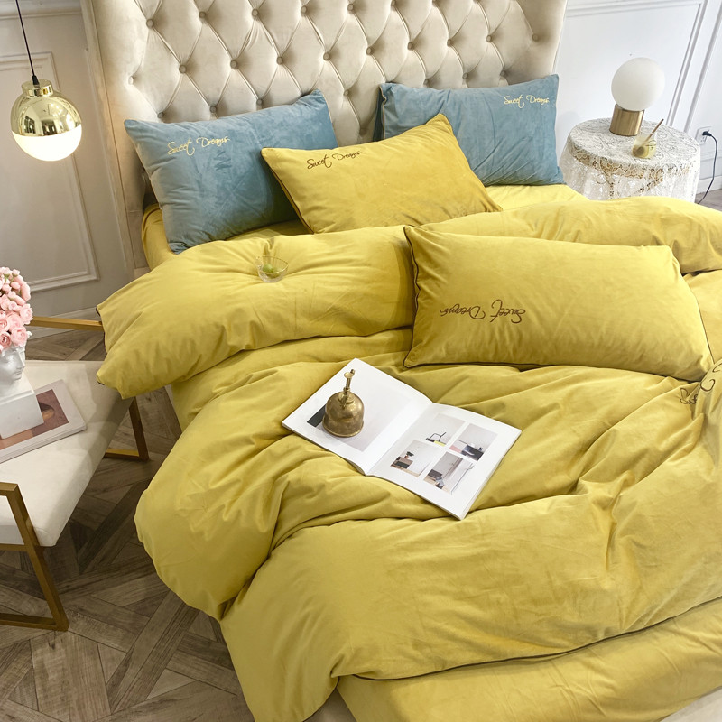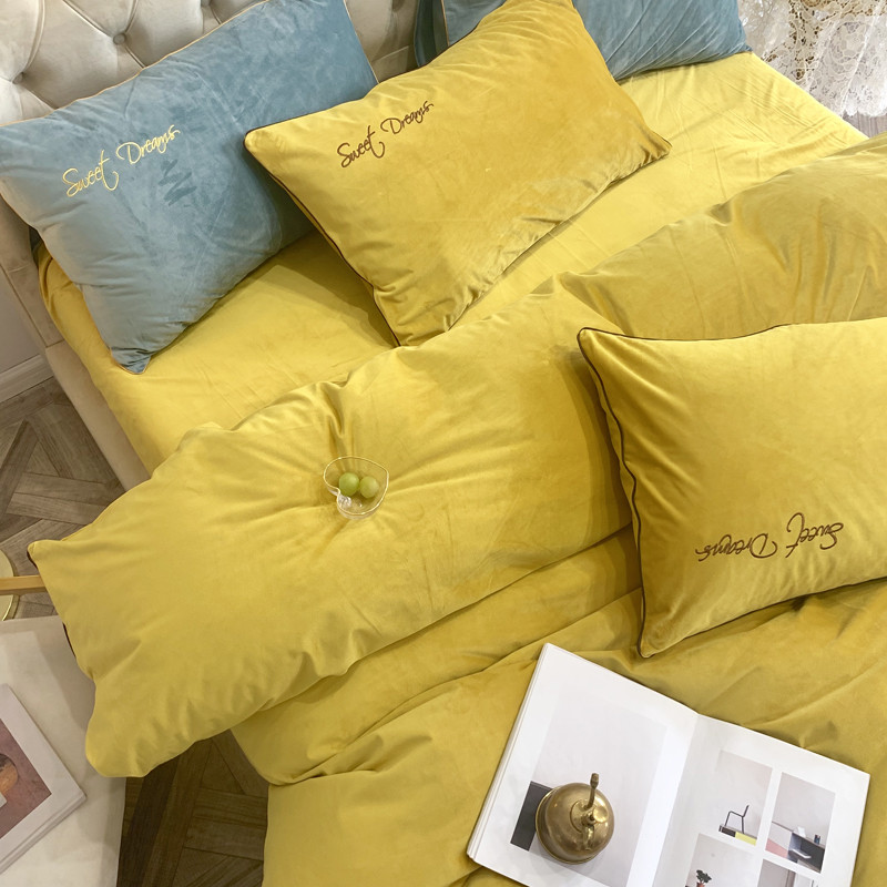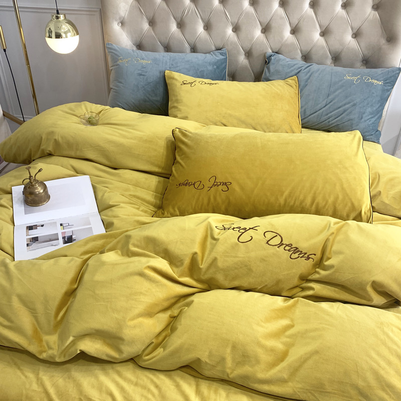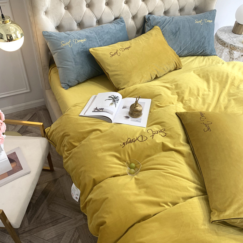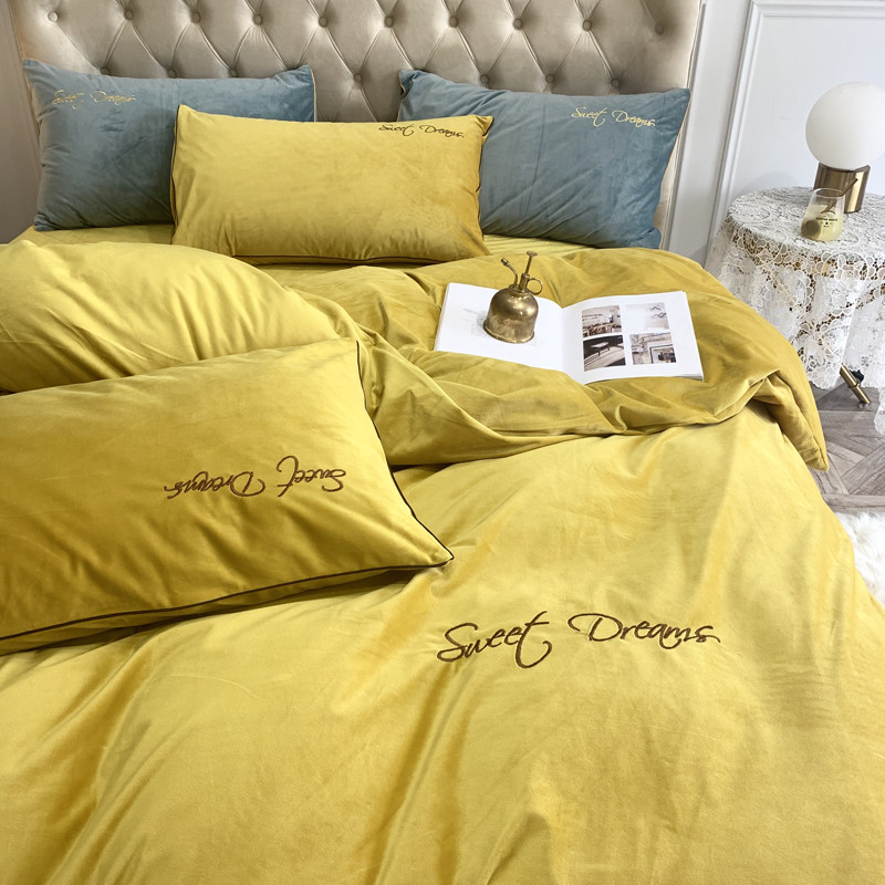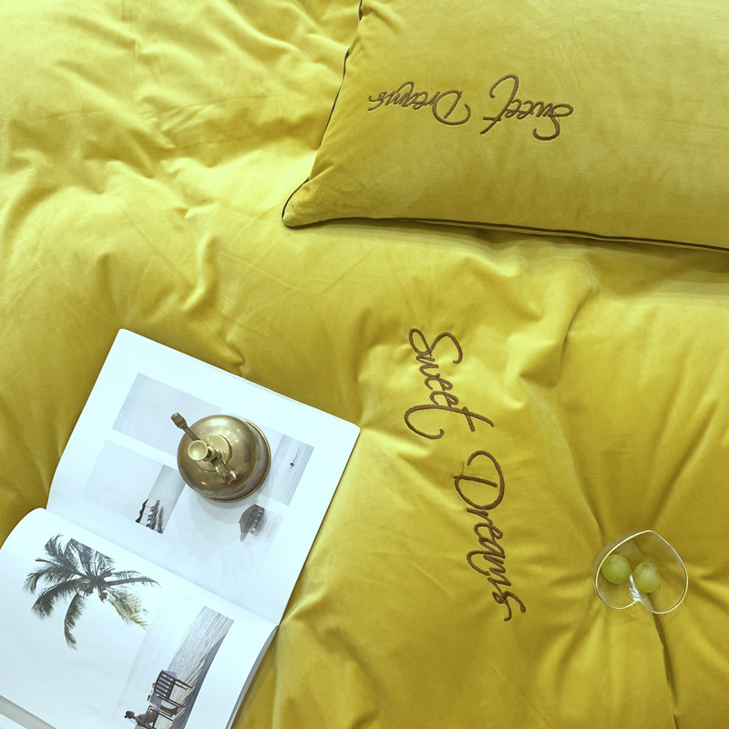 爱缦 2019水晶绒丽丝绒绣花工艺款四件套实拍图 姜黄