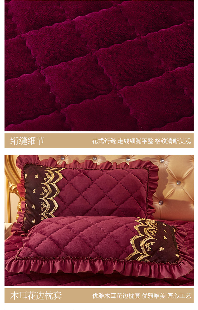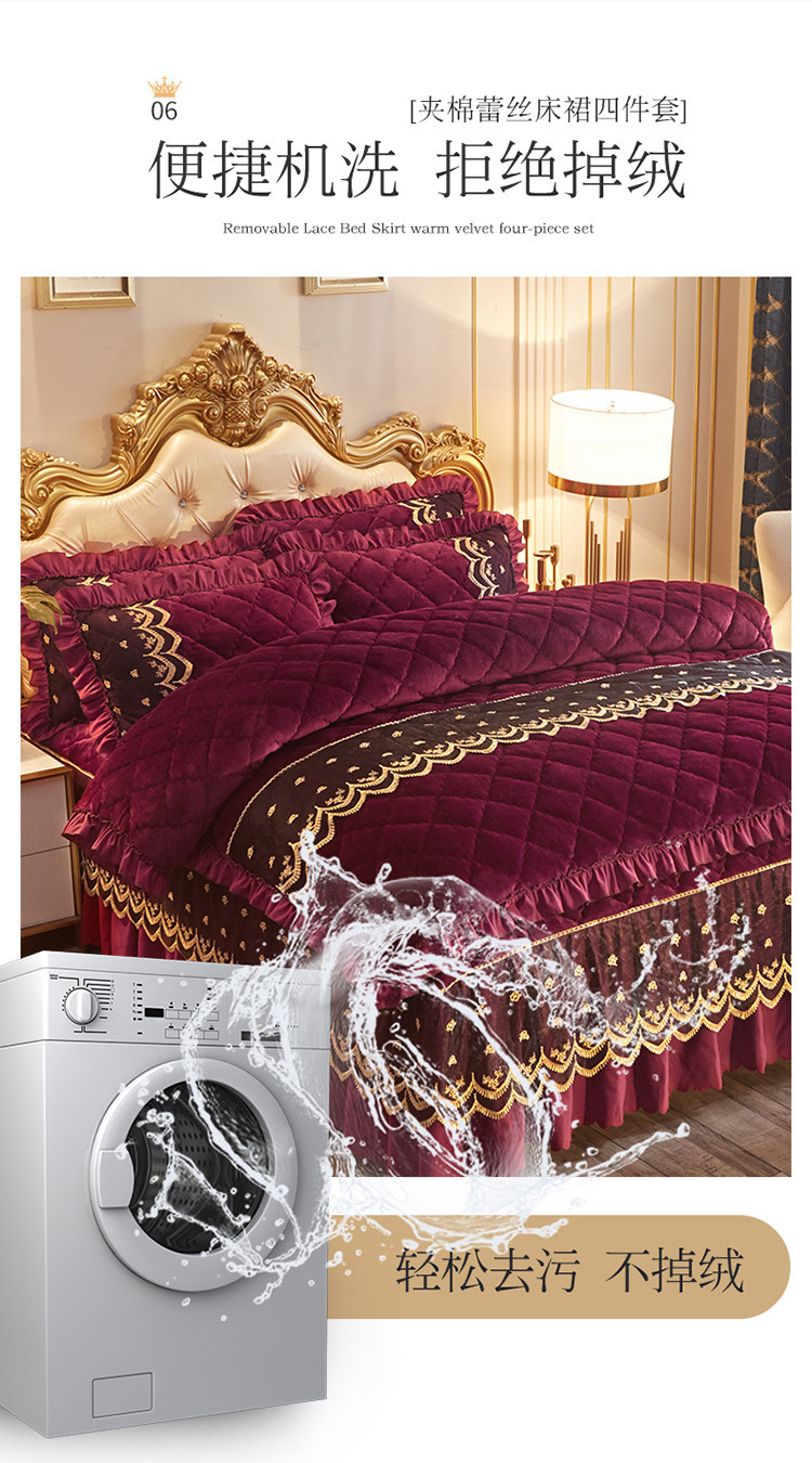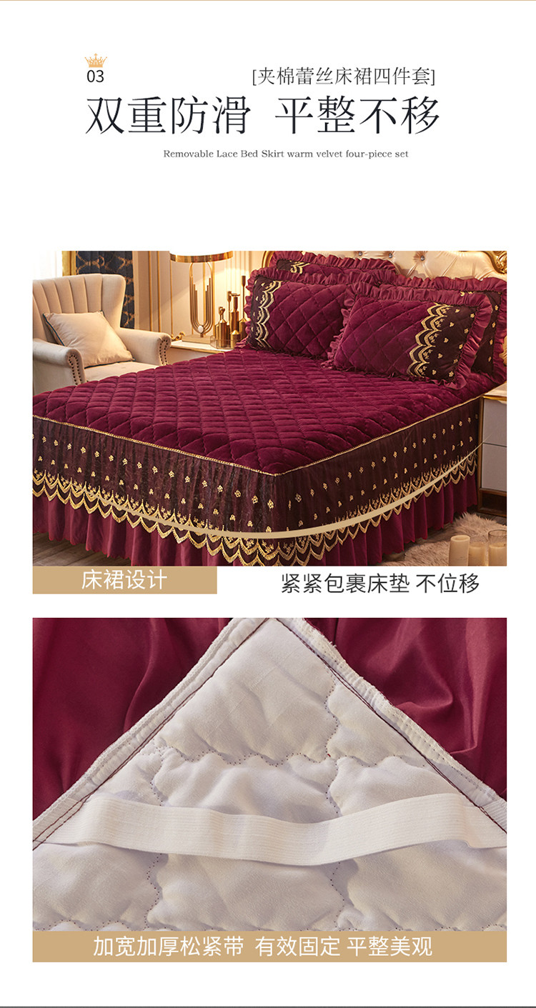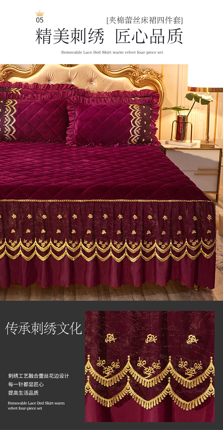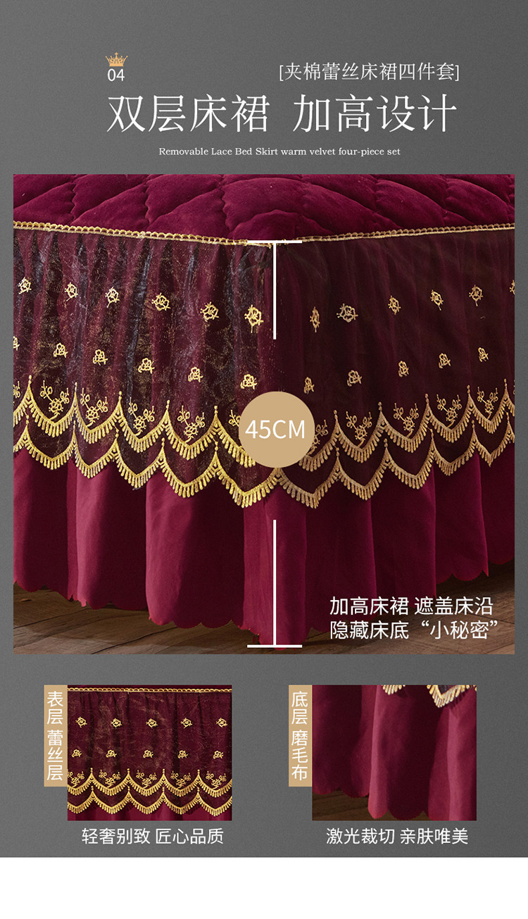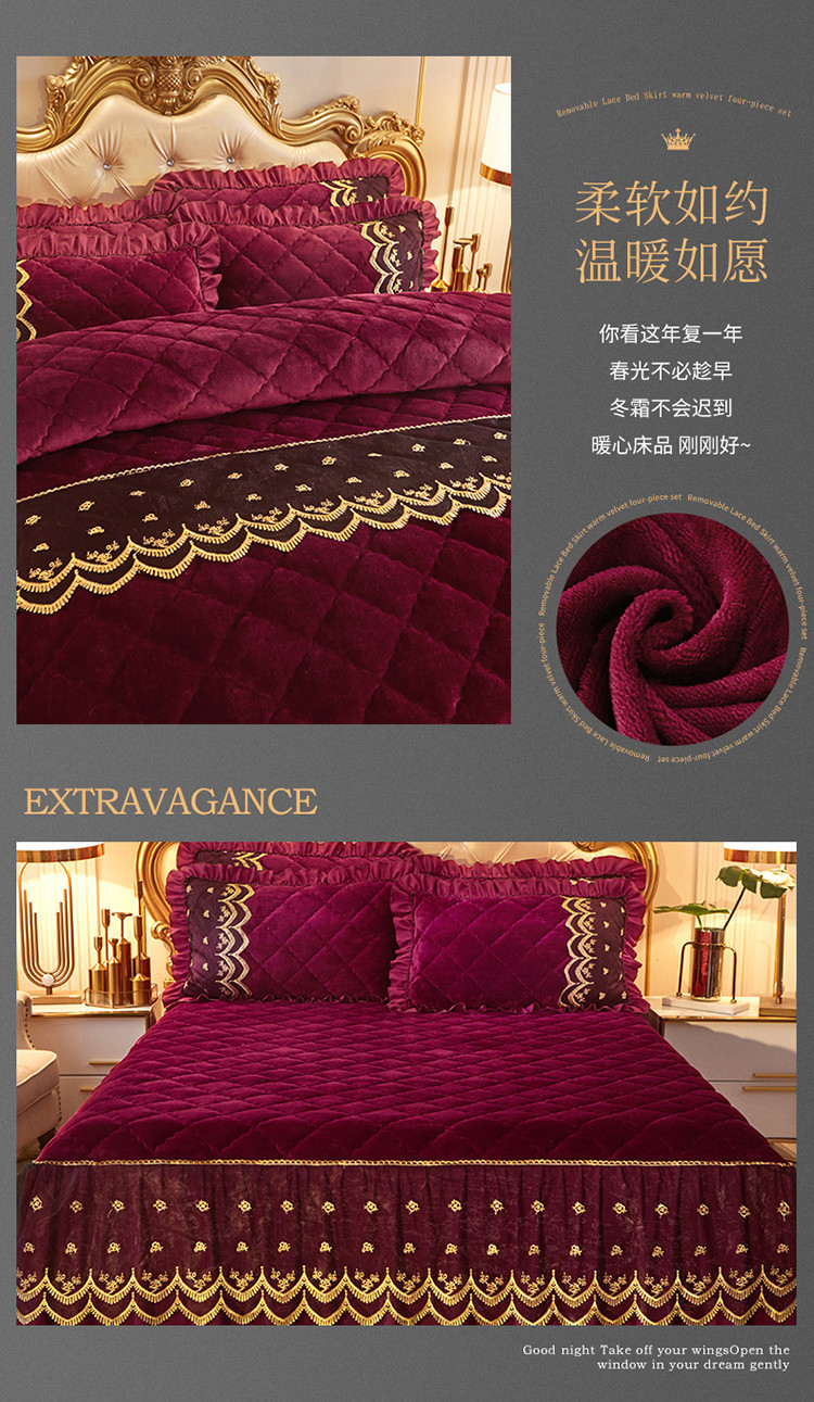 情恒家纺 2025法莱绒贵族风范夹棉床裙四件套 酒红