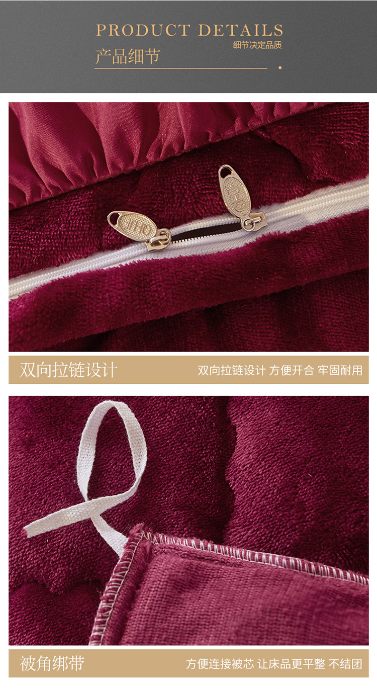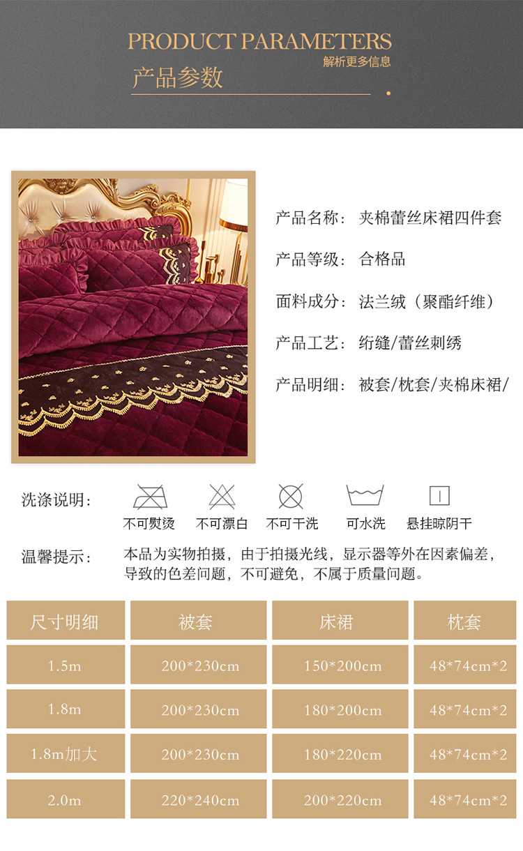 商品名称:情恒家纺 2025法莱绒贵族风范夹棉床裙四件套 酒红