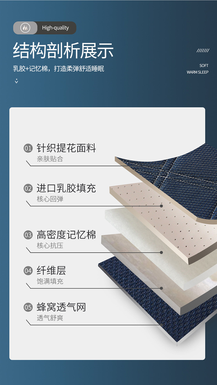 当前位置: 91家纺网 > 商品网购 > 床垫/床褥/床护垫 > 普通床垫 > 欣罗兰垫业 2022三明治针织记忆棉床垫 斜纹蓝