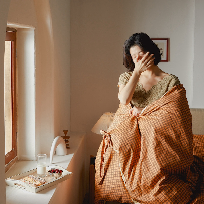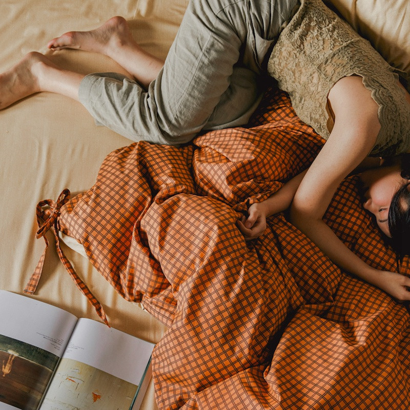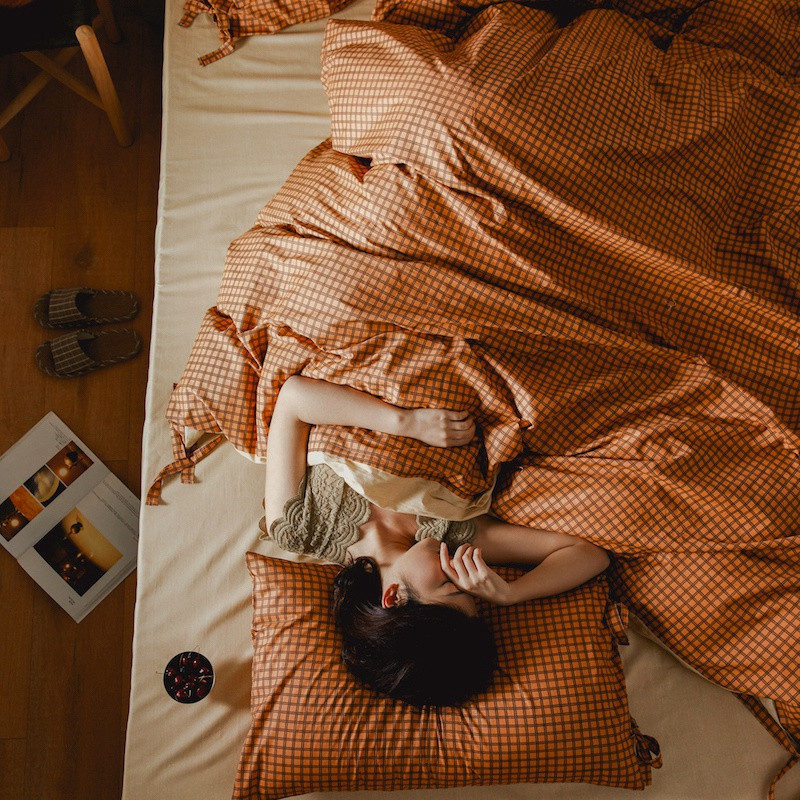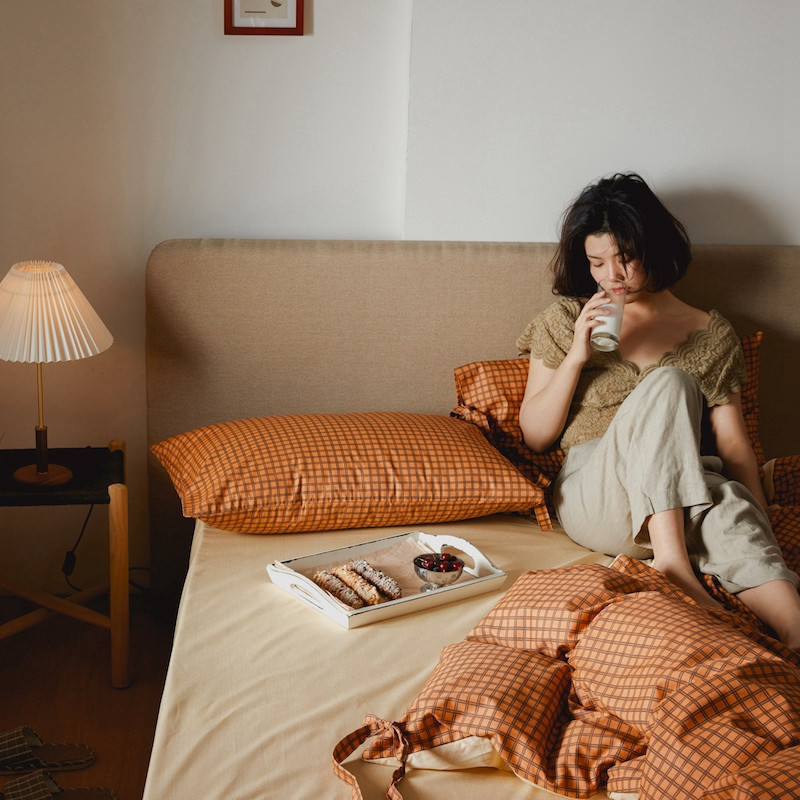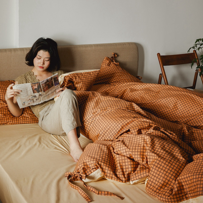顾里 2020新款全棉系带复古格纹四件套 南瓜格