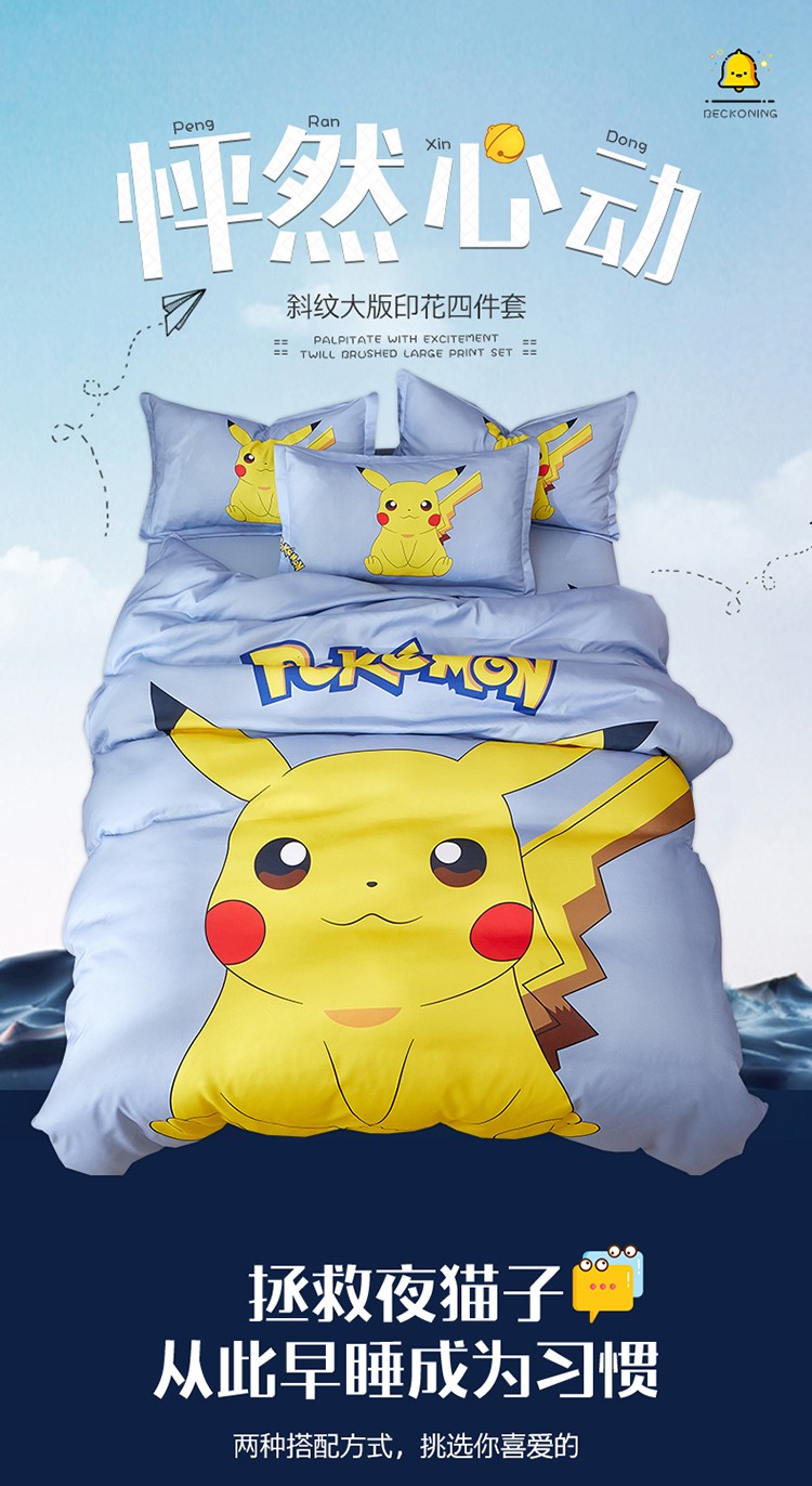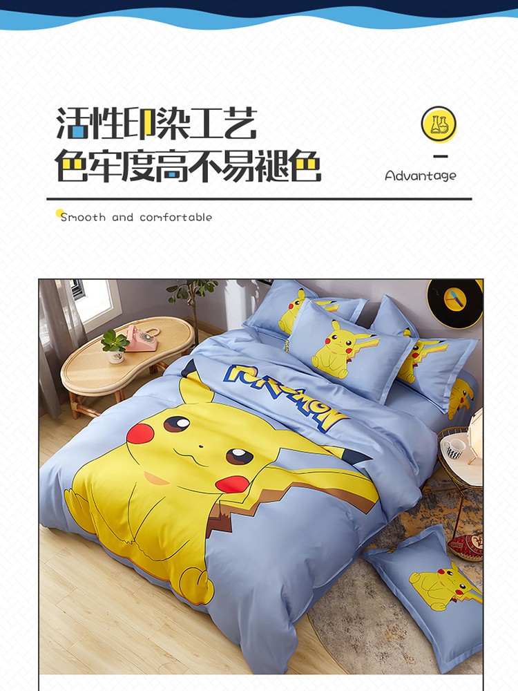 当前位置: 91家纺网 > 商品网购 > 床品套件 > 四件套 > 化纤普通四件套 > KT猫直营店 2024新款大版卡通四件套 皮卡丘