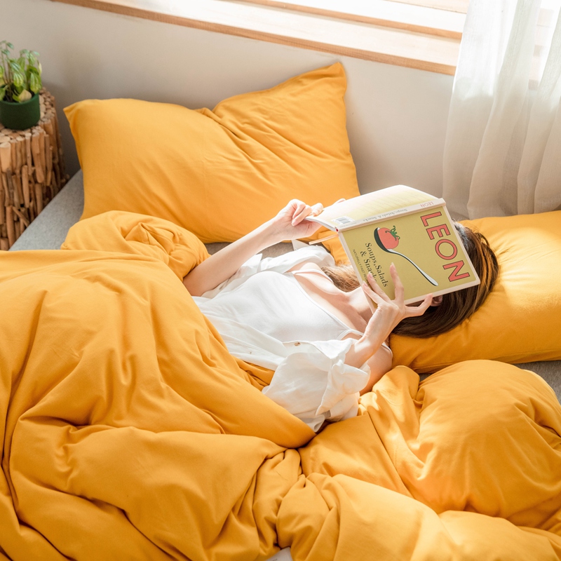 当前位置: 91家纺网 > 商品网购 > 床品套件 > 四件套 > 针织棉四件套 > 华超针织 2021新款针织纯色四件套 姜黄配麻灰