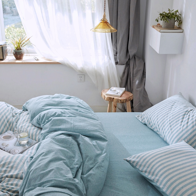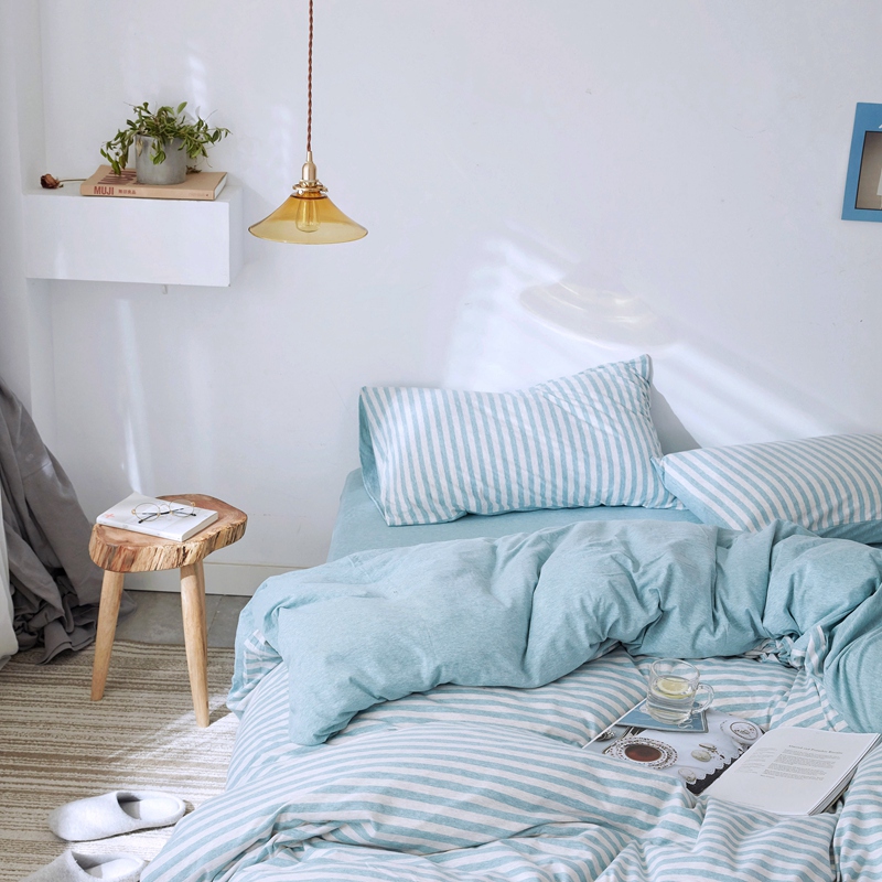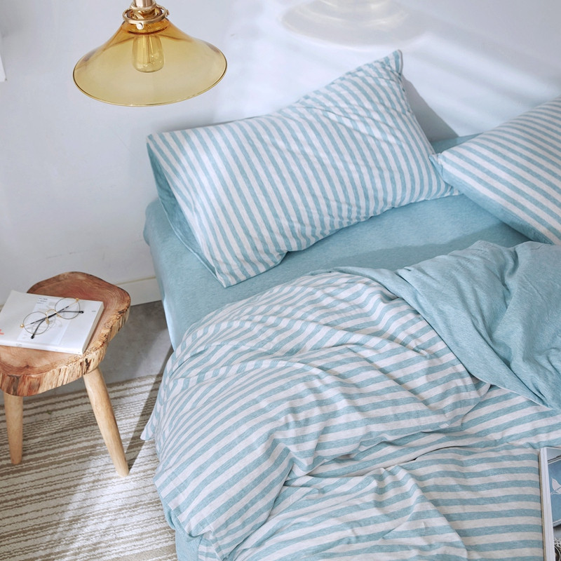 当前位置: 91家纺网 > 商品网购 > 床品套件 > 四件套 > 针织棉四件套 > 华超针织 2021新款针织四件套 水蓝中条