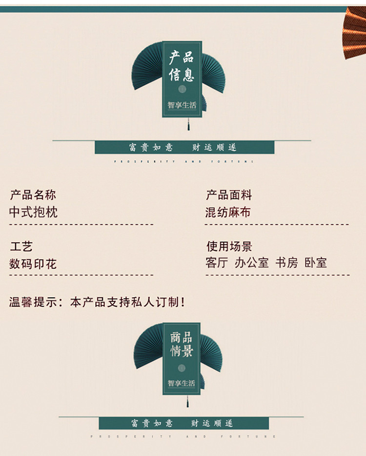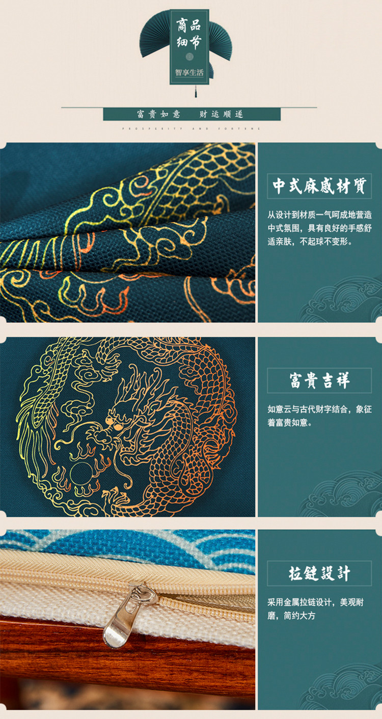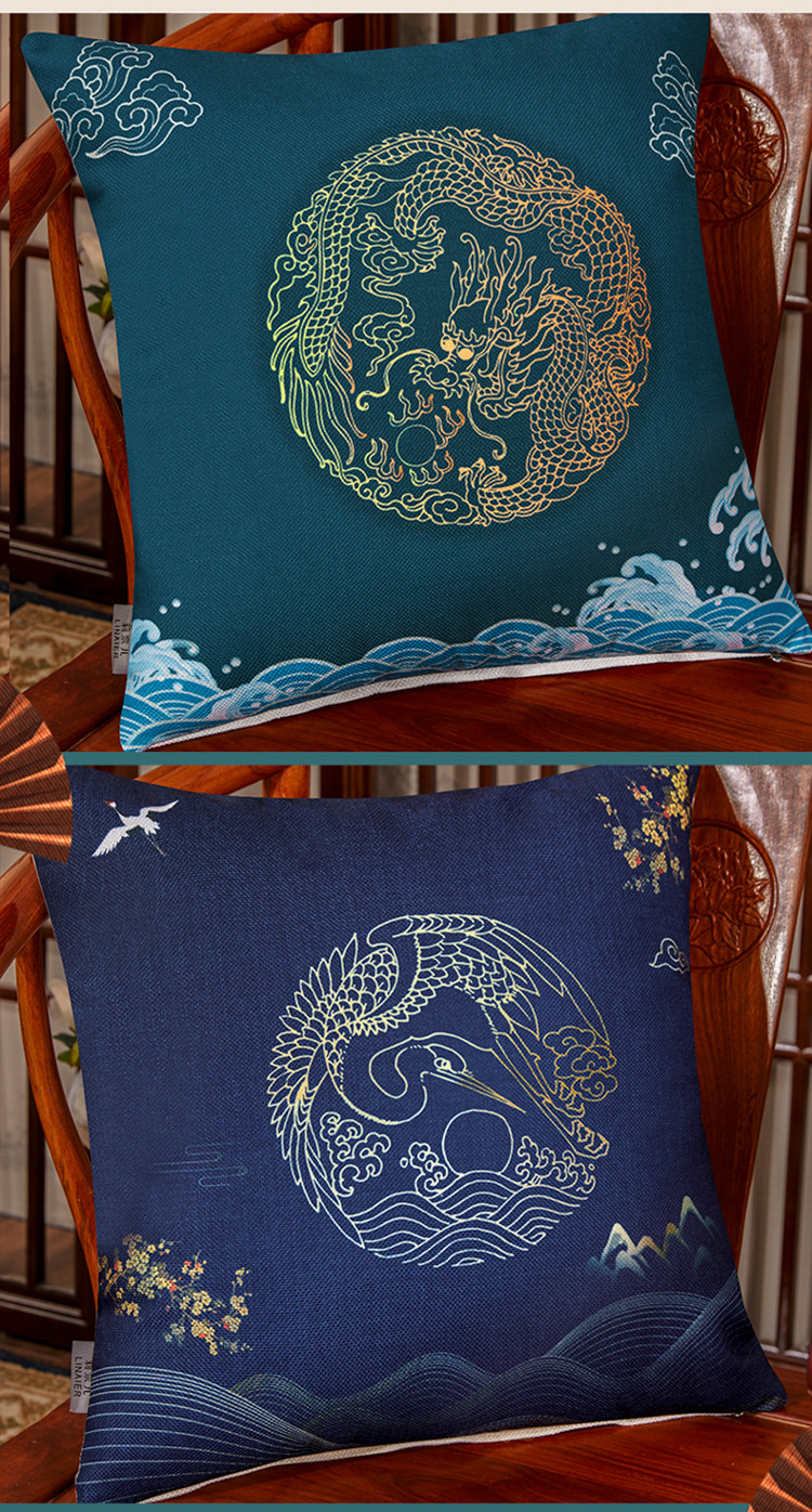 商品名称:北辰 2020新款麻布印花新中式抱枕 祥瑞
